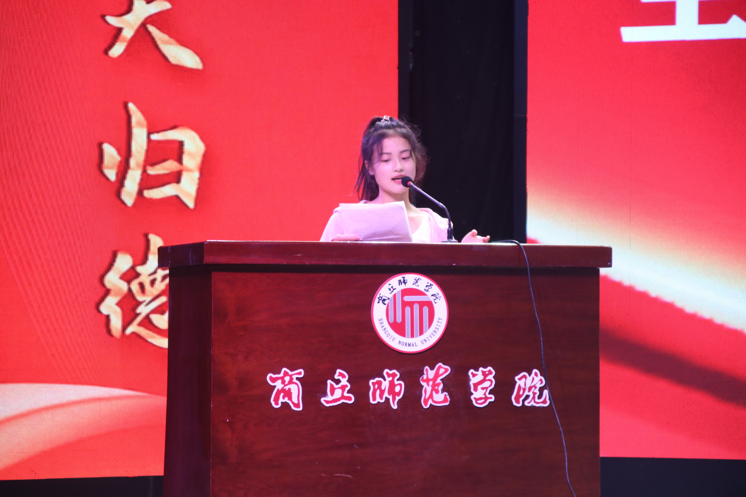 大会进行第六项,2021级学生代表赵子龙和2022级新生代表张婷婷分别上台发言。老生代表赵子龙以学长的角度在校园学习生活、专业学习等方面给予了大家中肯的建议和亲切祝福。新生代表张婷婷在发言中表达了自己对大学生活的期待和向往,并分享了自己对于大学生活的发展规划。