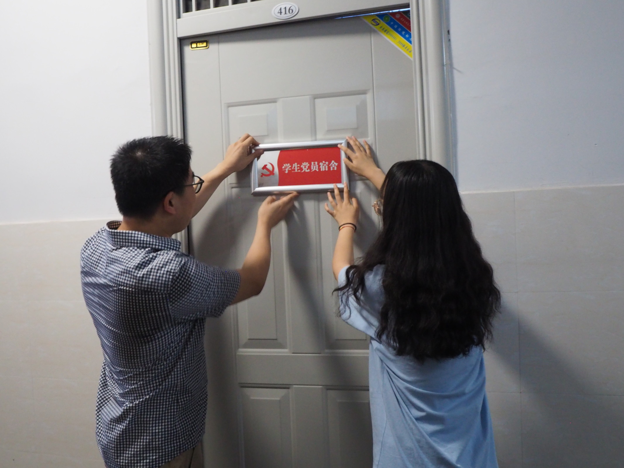挂牌过程中,老师们一同走进学生宿舍,与学生进行深入交流。朱震杰强调,党员宿舍挂牌是一种荣誉,更是一种责任,希望学生党员充分发挥“一间党员宿舍、一座先锋堡垒”的引领作用,为实现学生党建进宿舍,优化我院学生健康成才的宿舍环境而努力。陈东鹏介绍了党员挂牌活动的初衷,要求党员们时刻牢记党的宗旨,增强党员意识,在日常生活中以身作则,发挥先锋模范作用。宋艳军和张美芸共同询问了学生们学习和生活上的情况,在期末来临之际,希望党员学生们能带动同学形成温馨和谐、共同奋进的宿舍氛围。学生党员纷纷表示寝室挂牌活动,强化了党员身份的认同感,能够时刻提醒自己在平时生活中要注意言行做好表率、树立旗帜。