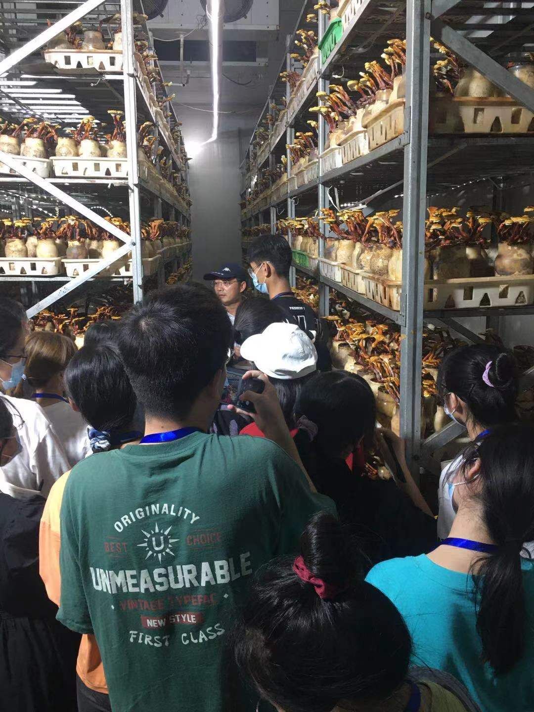 下午,师生们来到了河南世纪香食用菌开发有限公司,该公司是河南省集食用菌科研、培训、生产、加工、销售、进出口、生态观光为一体的科技开发型国家农业产业化重点龙头企业。学生们首先在车间观看了视频宣传片,对世纪香公司食用菌产业高质量发展有了一个初步认识。随后,又先后参观了该公司自动化菌种瓶装生产线、珍稀食用菌液体菌种全自动化生产线、工厂化生产食用菌的智能生产车间、产品展示销售中心和世纪香菌博园等,体验和学习了世纪香公司在食用菌品种开发、繁育、生产方面的领先科技以及食用菌产业化、工厂化、智能化的现代农业新技术,了解了食用菌功能性食品开发和发展方向。