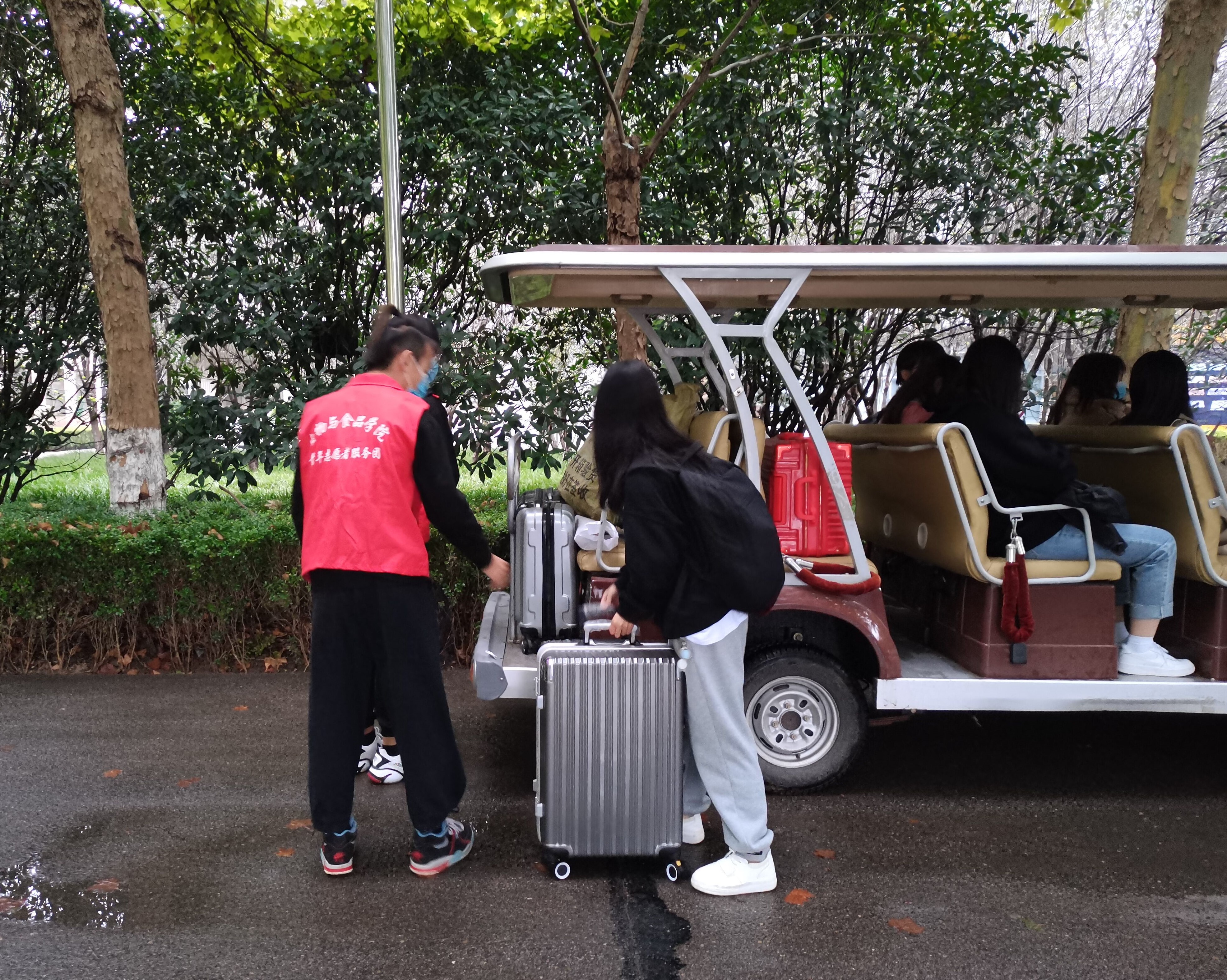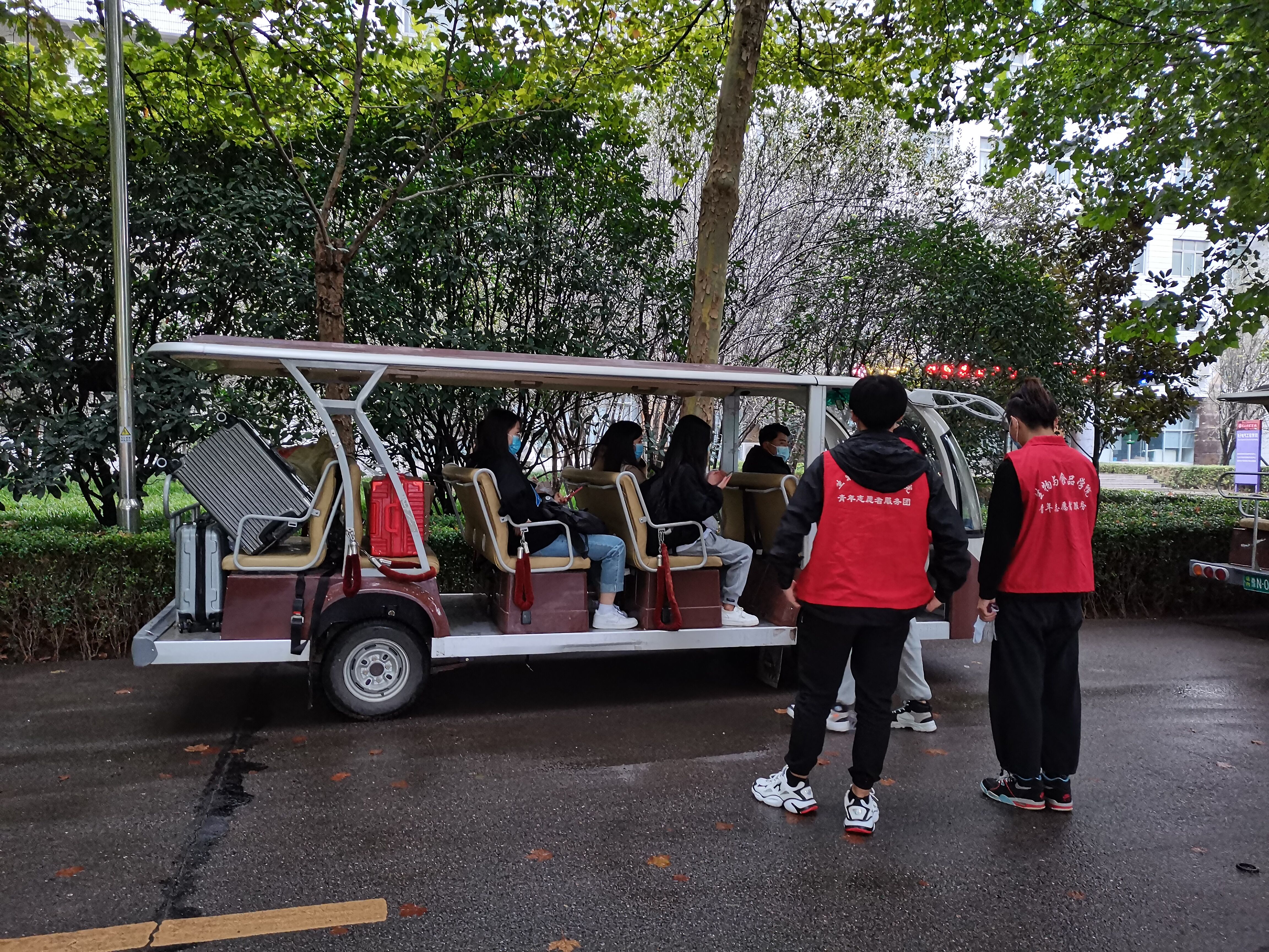 我院采取多项措施来确保学生返校的安全,入校前严格审核学生的健康信息,按照疫情防控要求,入校时我院学生严格按照学院入学通道一米间隔自觉排队,必须持有48小时内核酸证明。各个检查点安排有志愿者值班,学生入校需出示行程码、健康码、核酸结果以及返校申请审批表,凭校园卡测温消毒后更换口罩入校。入校门后组织我院学生扫描二维码识别登记信息后生成的检测二维码排队进行核酸检测,完成检测后回到宿舍,按照学院规定不得随意外出。我院学生严格遵守学院规定报道流程,按照规定返校复学,入校后核酸检测结果未出来之前学生在宿舍上网课,避免人群过多接触。