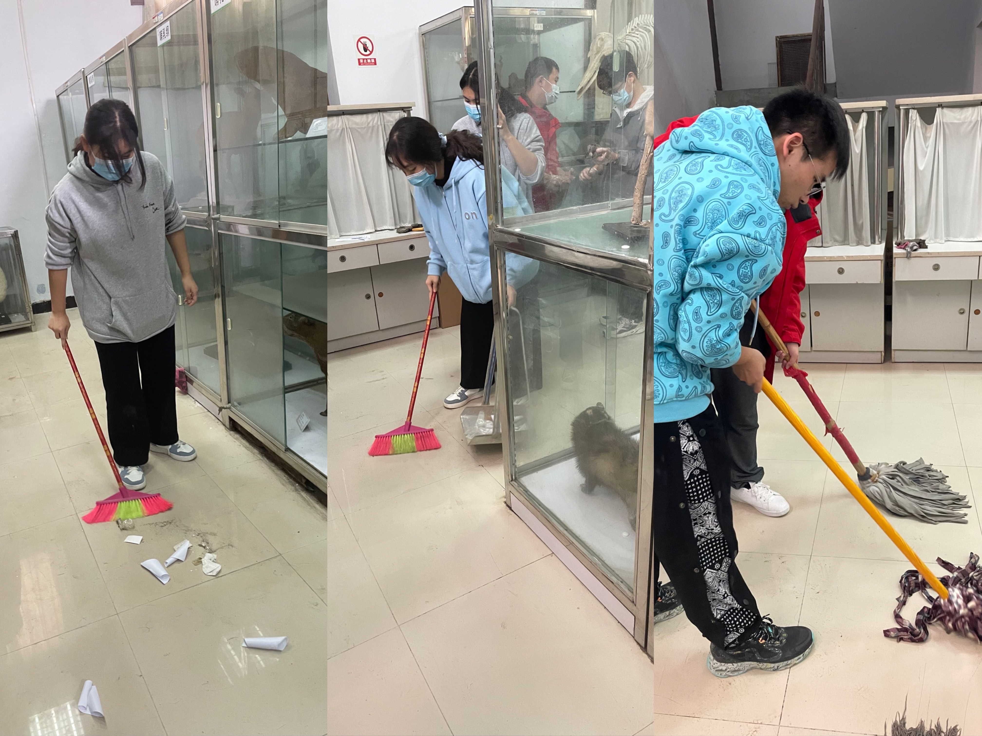 本周,生科21-3班全体同学积极参与了我院组织的标本室清理活动。本次活动生物科学21-3班主要是负责脊椎动物科的标本整理,在班长张乐平有序的组织分工下,31位学生各自在不同的时间点进行贴标签、擦玻璃、扫地等任务。在活动期间,同学们热情洋溢地进行清扫活动,展现了生科21-3班学子阳光向上,精神饱满的良好状态。在清扫活动中,同学们学到了书本以外的知识,了解了更多种类的脊椎动物。经过大家几天的不懈努力,不仅使标本室焕然一新,更在活动中锻炼了个人的劳动能力,加强了班级的团结合作意识,为我院的建设起到了积极推动作用。