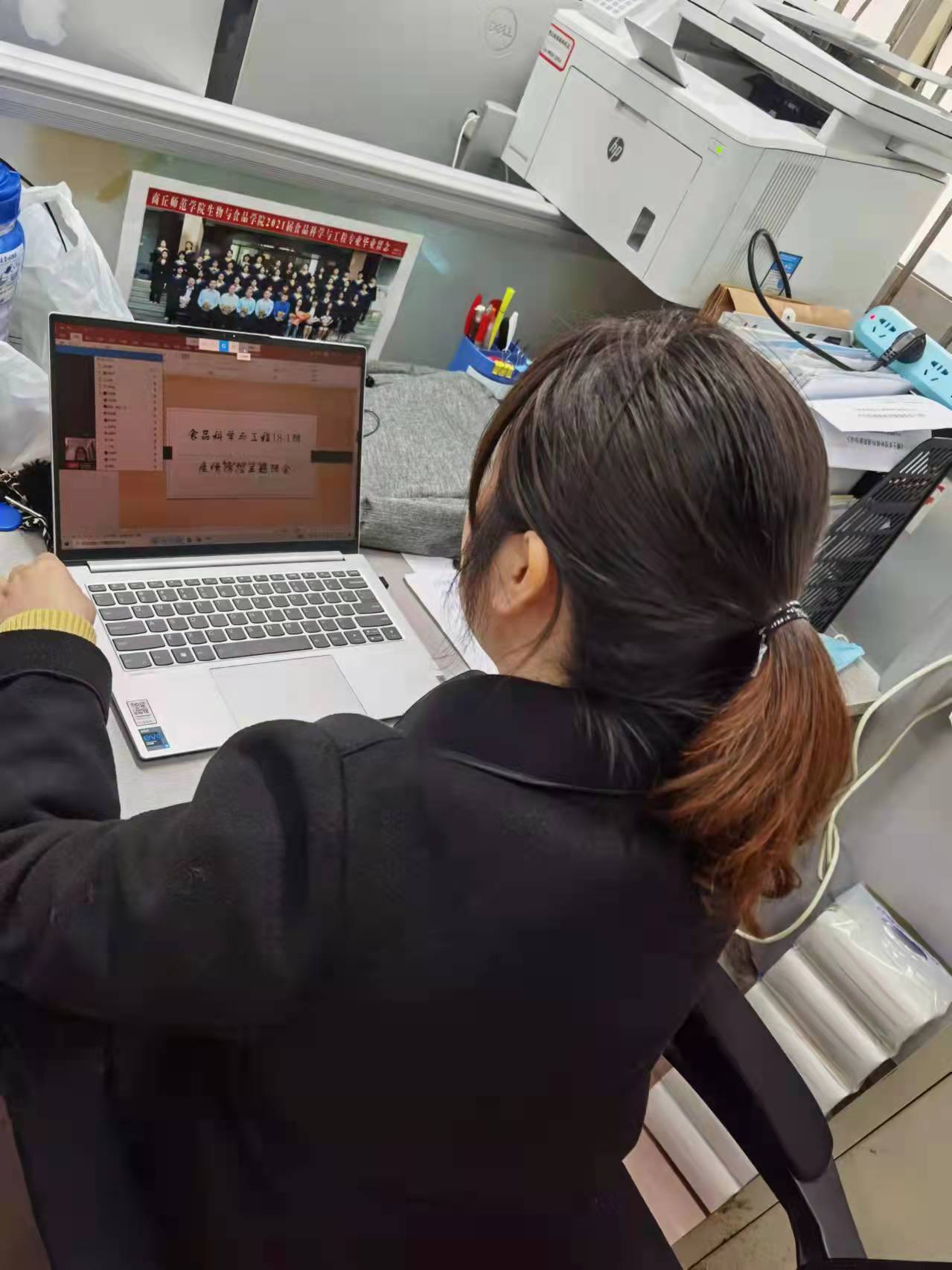 班会伊始,徐园园首先向同学们介绍了当前疫情的防控形势和学校疫情防控现状,强调了日常做好疫情防护措施的必要性。接下来,她嘱咐同学们要做好日常防护,例如经常接触的地方和物品进行消毒、坚持正确的洗手方法、在外出时佩戴口罩、避免近距离接触人群等。同学们纷纷表示会从自身做起,从细节做起,提高自我防护意识,做好日常疫情防控措施。然后,她呼吁同学们在课余时间里多进行锻炼,提高自身免疫力。最后,徐园园希望同学们在大四期间调整好自己的心理状态,利用好当前时间努力学习,为研究生复试做好准备。此外,她还告诉同学们要做好毕业论文,不要有心理压力,要保持良好乐观的学习态度。