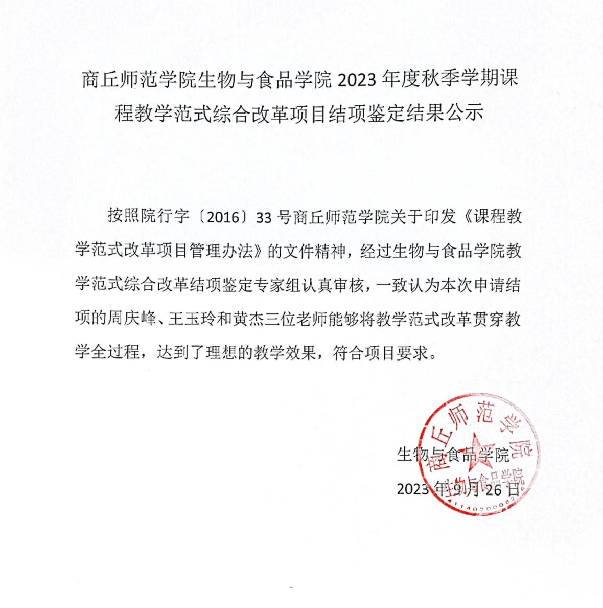 会议结束后,学院对本次课程教学范式综合改革项目结项鉴定结果予以公示。