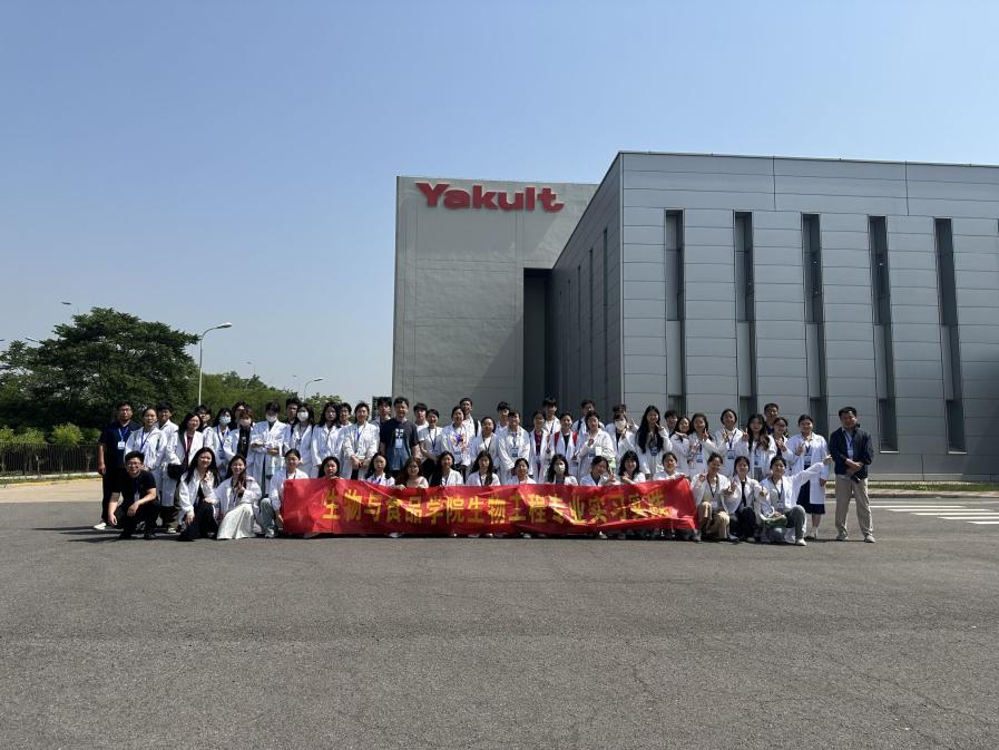5月17日上午,师生抵达天津养乐多乳品有限公司及天津国际生物医药联合研究院。在养乐多公司,同学们学习到了养乐多的有益功效、生产流程,认识了养乐多从一株菌发展到如今大企业的发展史,从而引发了同学们的思考,也增强了同学们对微生物生产应用的认识。