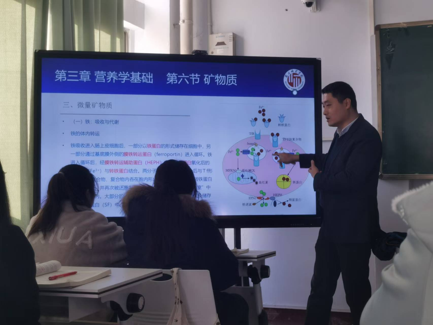 宋旸老师在课堂教学中详细介绍了铁、锌、硒、碘等关键微量元素的生理功能,缺乏和过量时导致的疾病,及微量元素主要的食物来源。在互动环节,宋旸老师引导食品专业同学们参与讨论,分享自己或家人因缺乏某种微量元素而遇到的健康问题,以及如何通过日常饮食有效补充这些微量元素。同时,通过引入问题如“铁矿炒菜是否能补铁”,“食用加碘盐有无必要”等提高同学们的科学思辨精神,并根据于维汉院士扎根东北30余年治疗克山病的事迹引导同学们感受我国科学家的奉献精神和科学态度。