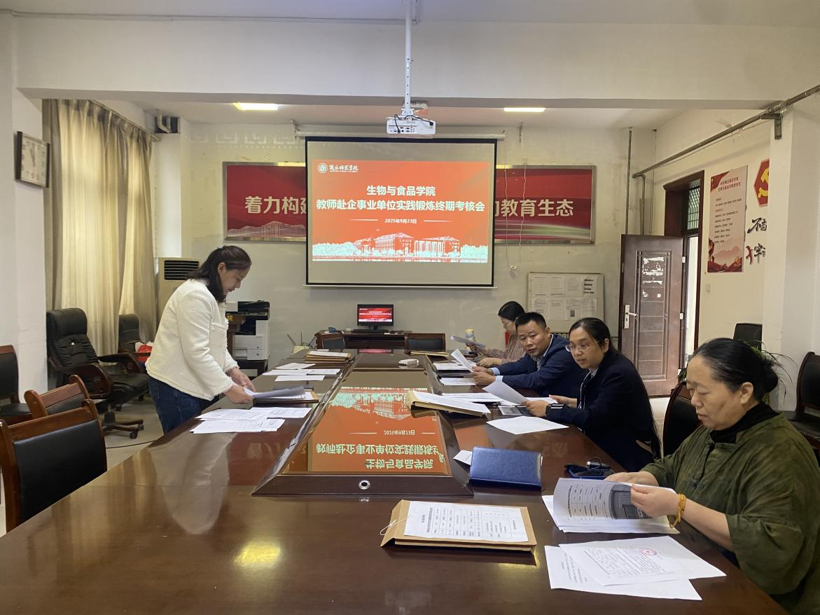 2025年9月23日上午,williamhill中文召开教师赴企事业单位实践锻炼终期考核会。学院副院长宋兆齐,生物科学专业郑爱珍主任,生物工程专业邓丹丹主任,食品科学与工程专业高丰衣老师,动物科学专业张春梅老师参加了会议。会议由学院副院长宋兆齐主持。