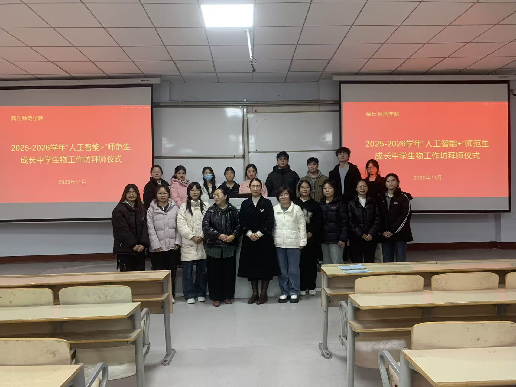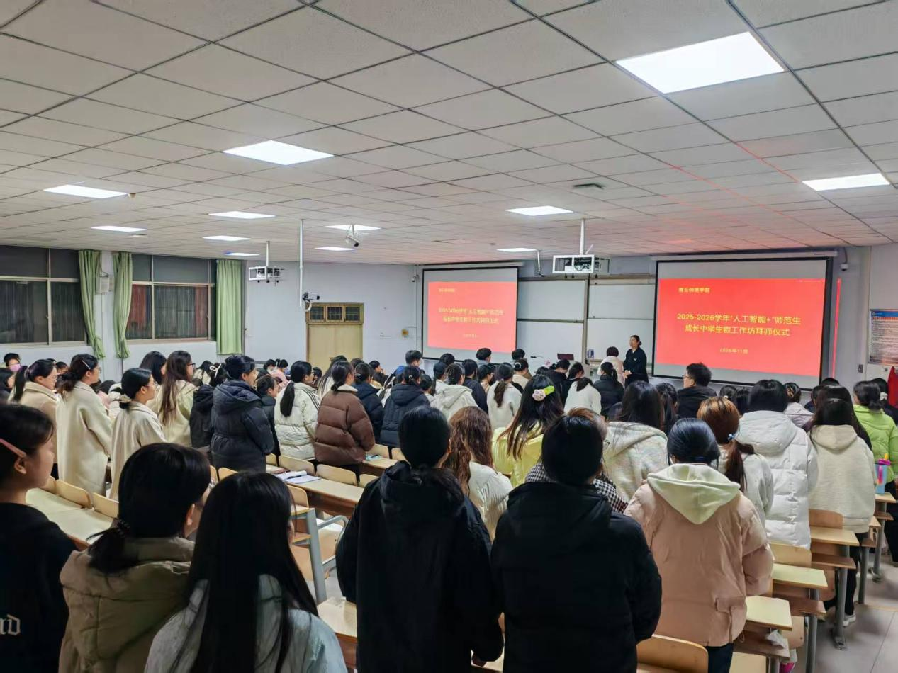 11月21日晚6点,“人工智能+”师范生成长中学生物工作坊拜师仪式在睢阳校区1号教学楼107教室顺利举行。商丘市基础教育发展中心生物教研员许洁、商丘市第二高级中学教师李金和williamhill中文生物科学系系主任郑爱珍参加了拜师仪式,活动由许洁老师主持。生物科学专业2023级全体学生参加了拜师仪式。