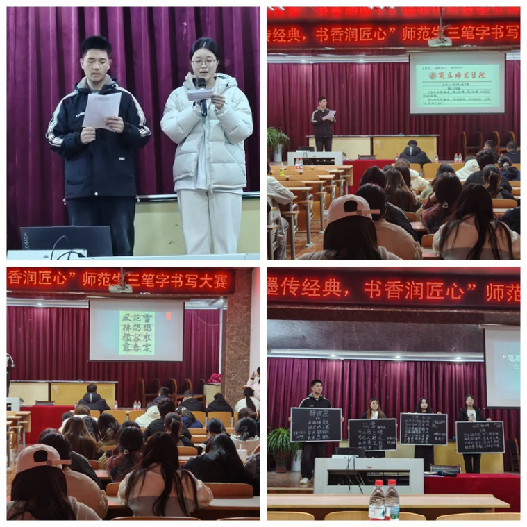 为弘扬中华优秀传统文化,提升师范生汉字书写能力,营造以文化人、以美育人的育人氛围,11月23日晚,由生物科学专业2025级2班承办、班主任陈冠华负责组织实施的“未来智慧名师”系列活动——“笔墨传经典,书香润匠心”三笔字书写比赛,在我院报告厅顺利举行。系主任郑爱珍出席并致辞,辅导员孟鑫明、班主任王志利、陈冠华、丁亚南、何兆华担任评委。