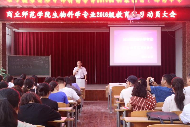 2019年9月1日,生物科学系在学院报告厅召开了生物科学专业2016级教育实习动员大会。参加会议的有:刘福林、康洁、苏天增、王万君、徐亚军、张峰、原宝东等10位指导教师。本次会议由系主任郑爱珍主持。