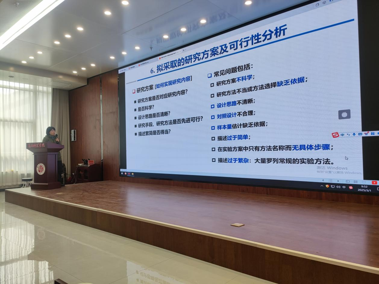 伊宝副研究员从申报书的规范填写,如何确定研究对象、研究内容、重点难点、研究方案及可行性分析等方面进行了详细解读。