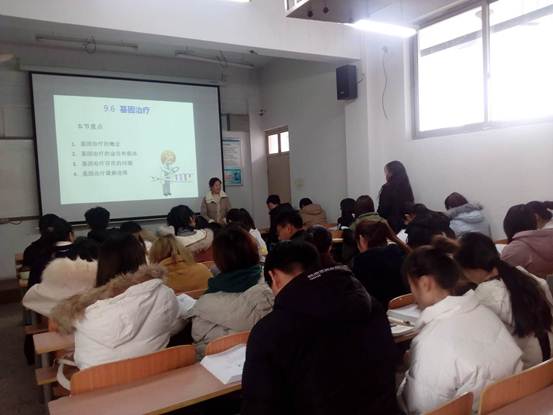 《分子生物学》课程是朱晓琴博士承担的威廉官网中国范式教改项目,本课程已经在生物工程2014级、2015级、2016级顺利开展了范式教改教学,教学效果较好。本节课《基因治疗》采取线上视频学习和线下课堂讨论相结合方式进行教学,线下课堂从以下四个环节展开:一、知识回顾,目的是衔接线上线下、统一课堂内容体系;二、布置作业,引导小组讨论,目的是通过互助学习,消化知识、解决难题;三、小组相互提问,目的是促进知识理解,深化学生学习、启发学生思考;四、小组汇报和实例分析,目的是引导知识应用,培养学生应用知识的能力,驱动创新、激发学生学习兴趣。整个课堂精彩纷呈,气氛活跃,取得很好的教学效果。