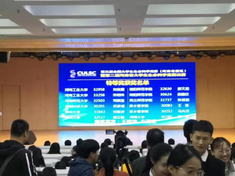 10月25日-27日,第二届河南省大学生生命科学竞赛在信阳师范学院举行,本届比赛最终决出特等奖12项,一等奖12项,二等奖24项,三等奖36项。其中我校学生在本届竞赛中荣获特等奖1项、二等奖1项、三等奖2项。
