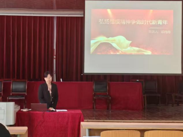 为激励青年学子勇担时代使命,在新时代的广阔舞台上拼搏进取,教师第二党支部书记邓丹丹老师于4月10日在我院报告厅为第56期入党积极分子讲授主题为“弘扬楷模精神,争做新时代新青年”的党课。