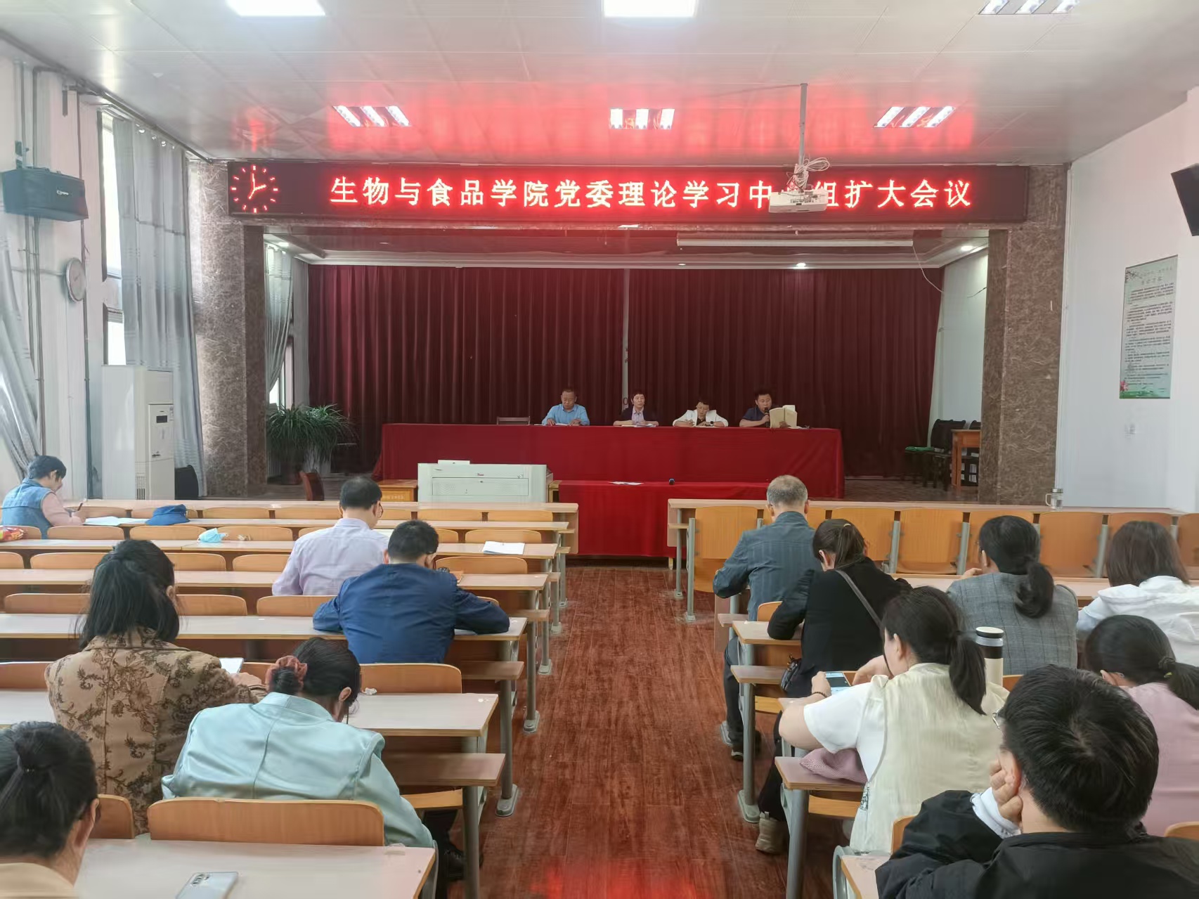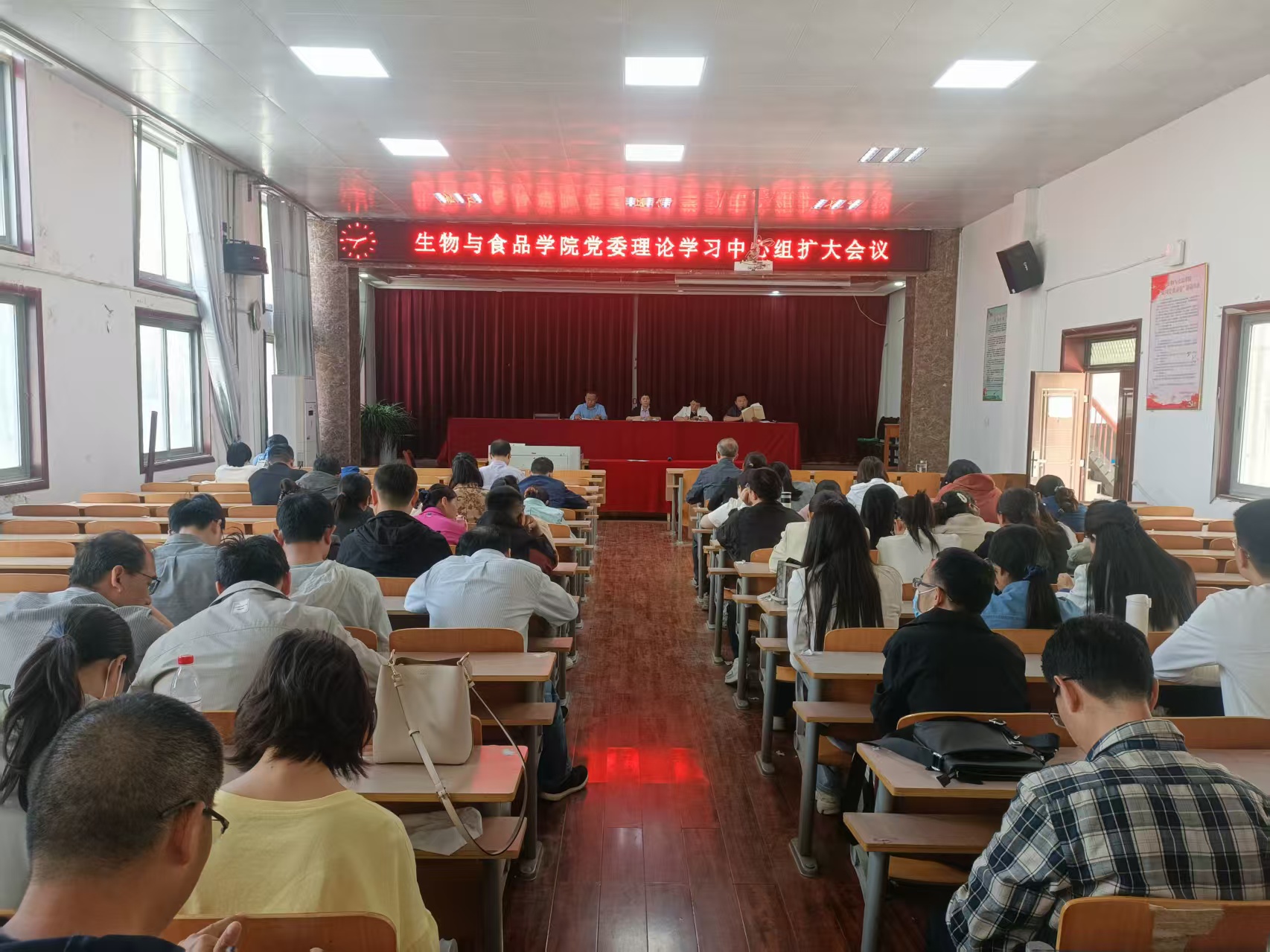 4月25日下午,williamhill中文学院党委召开理论学习中心组扩大会,开展深入贯彻中央八项规定精神学习教育第一次集中研讨。会议由学院党委副书记李杰主持,学院党委理论学习中心组全体成员、支部书记、全体教职工参加本次学习。