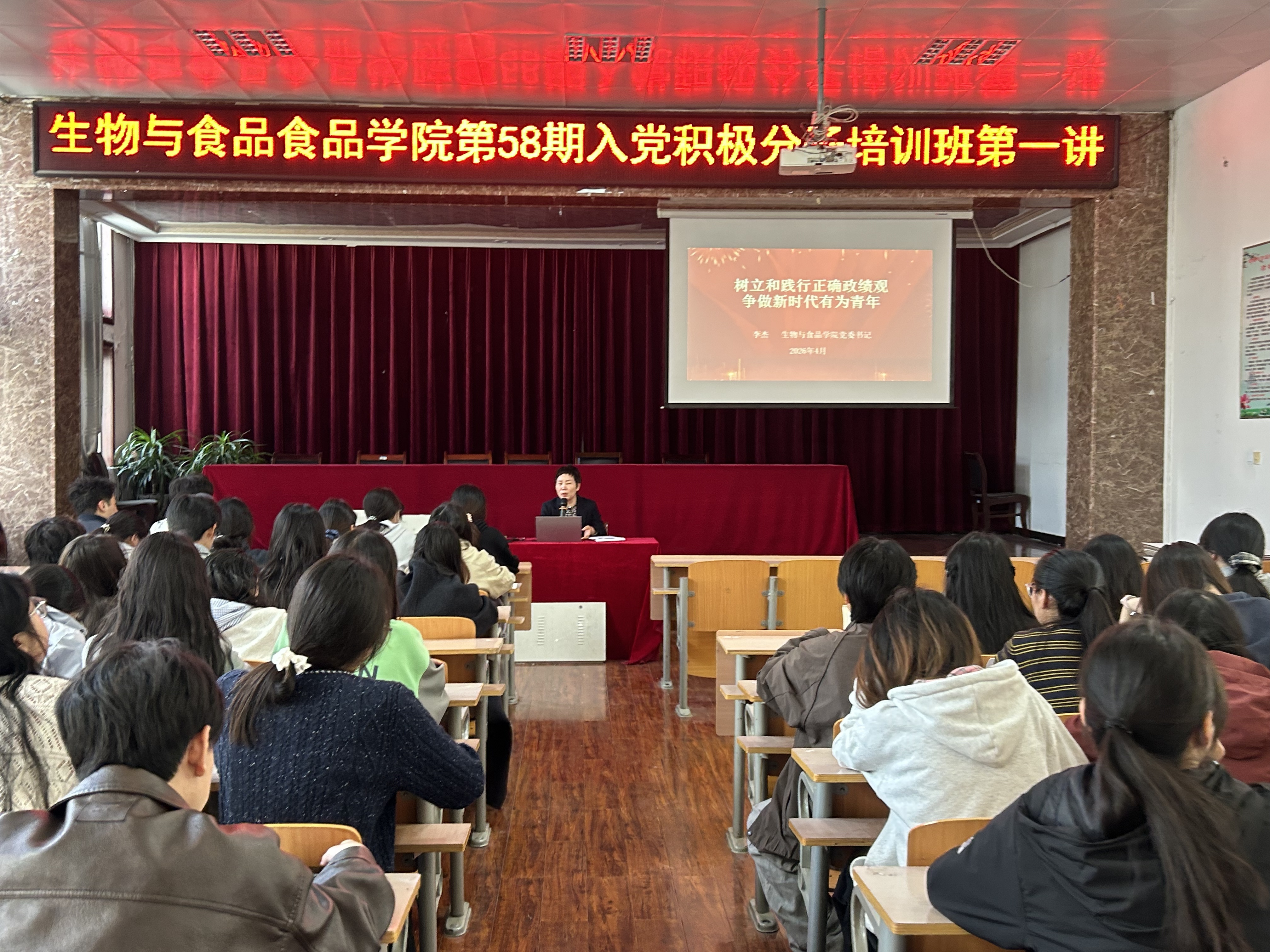为加强学生党性教育,4月1日,williamhill中文在学院报告厅举办第58期入党积极分子培训班第一讲——“树立和践行正确政绩观,争做新时代有为青年”主题党课,本次党课由学院党委书记李杰主讲,学院第58期入党积极分子参加。