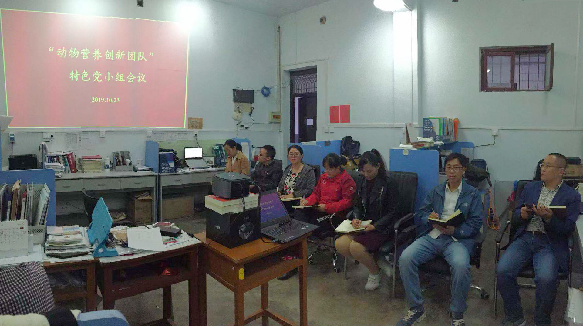 10月22日,williamhill中文教工第二党支部“动物营养创新团队”特色党小组于2号教学楼401办公室召开“不忘初心、牢记使命”主题教育工作会议。会议深入学习贯彻中央、全省、学校和学院“不忘初心、牢记使命”主题教育工作会议精神,会议由郭艳主持,小组成员韩进诚、张春梅、张进良、李志强、席丽、崔艳艳参加会议,动物科学系主任杨广礼老师列席会议。