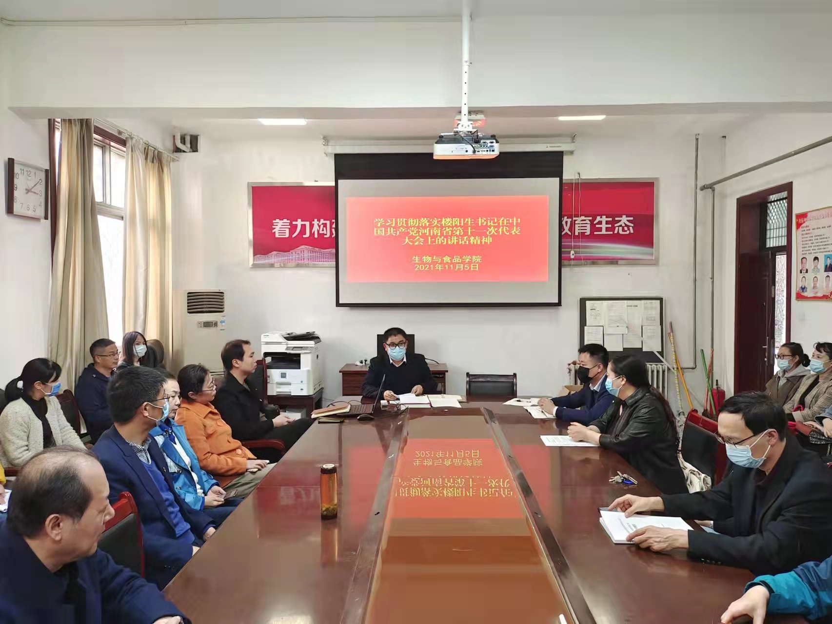 为了更好地传达学习并深刻领悟中国共产党河南省第十一次代表大会精神,不断提高政治站位,更好的锚定发展目标、理清工作思路,奋力争先出彩。11月5日,williamhill中文党委组织全体职工在学院会议室,学习楼阳生书记在中国共产党省第十一次代表大会上的讲话精神。会议由学院党委书记朱震杰主持。