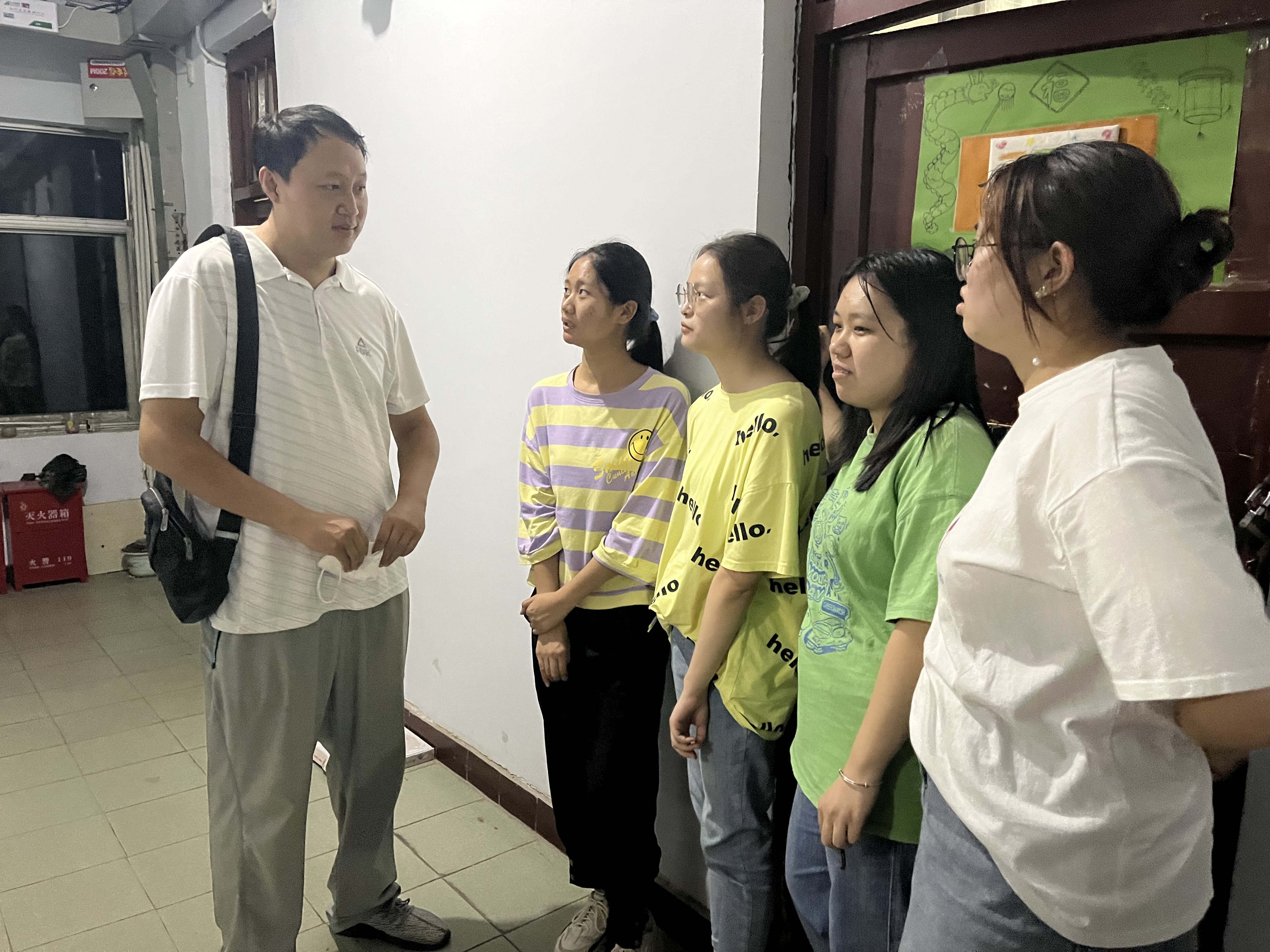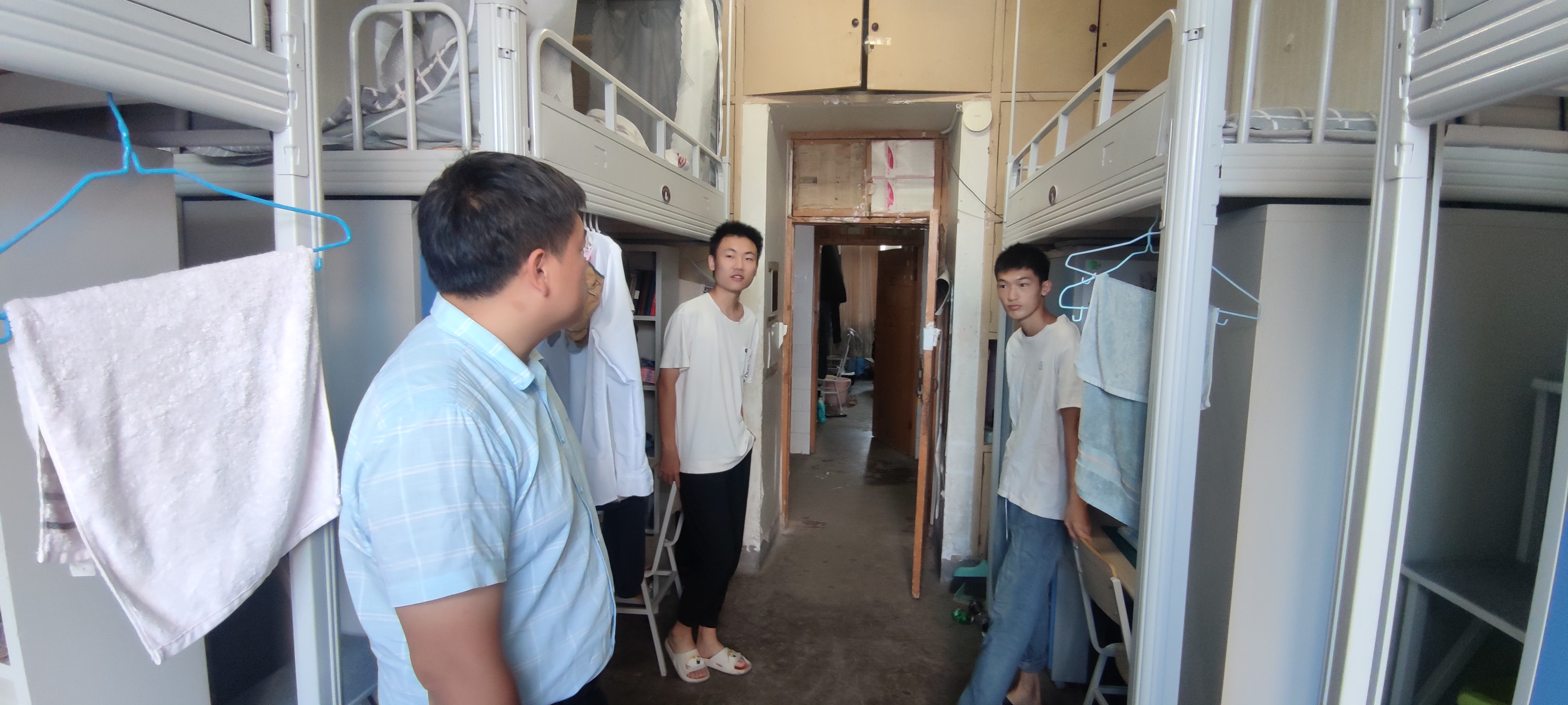 走访过程中,朱震杰亲切询问了学生的基本情况、网上学习情况、宿舍生活的感受,并就学生住宿环境、饮食问题以及寝室卫生等方面进行了交谈,叮嘱同学们严格遵守疫情防控期间学校的各项管理规定,做好个人防护,保持良好宿舍卫生。辅导员着重强调了宿舍安全卫生、疫情防控等方面的注意事项,提醒同学们在疫情防控期间养成良好的生活习惯和积极的心理状态。