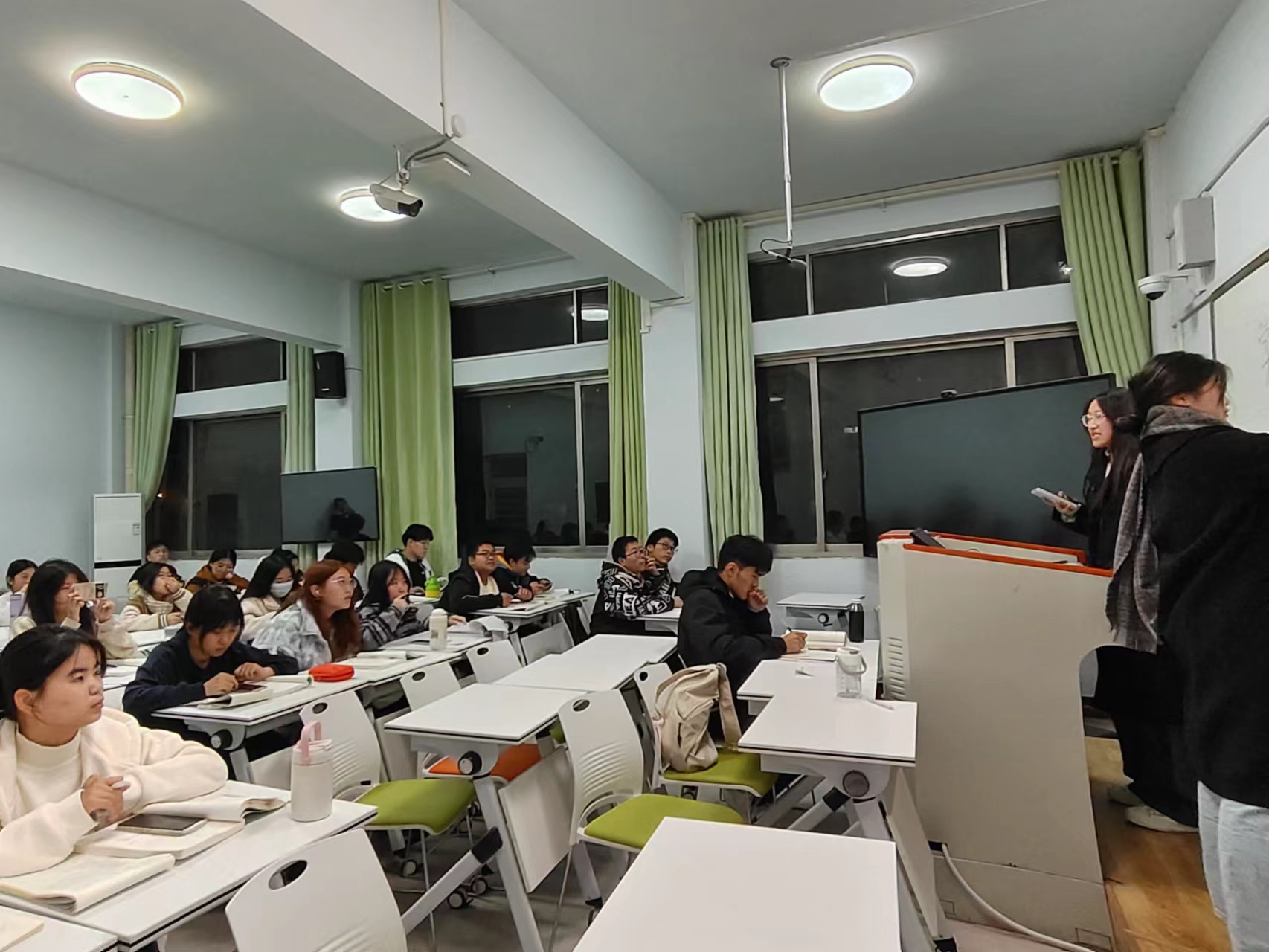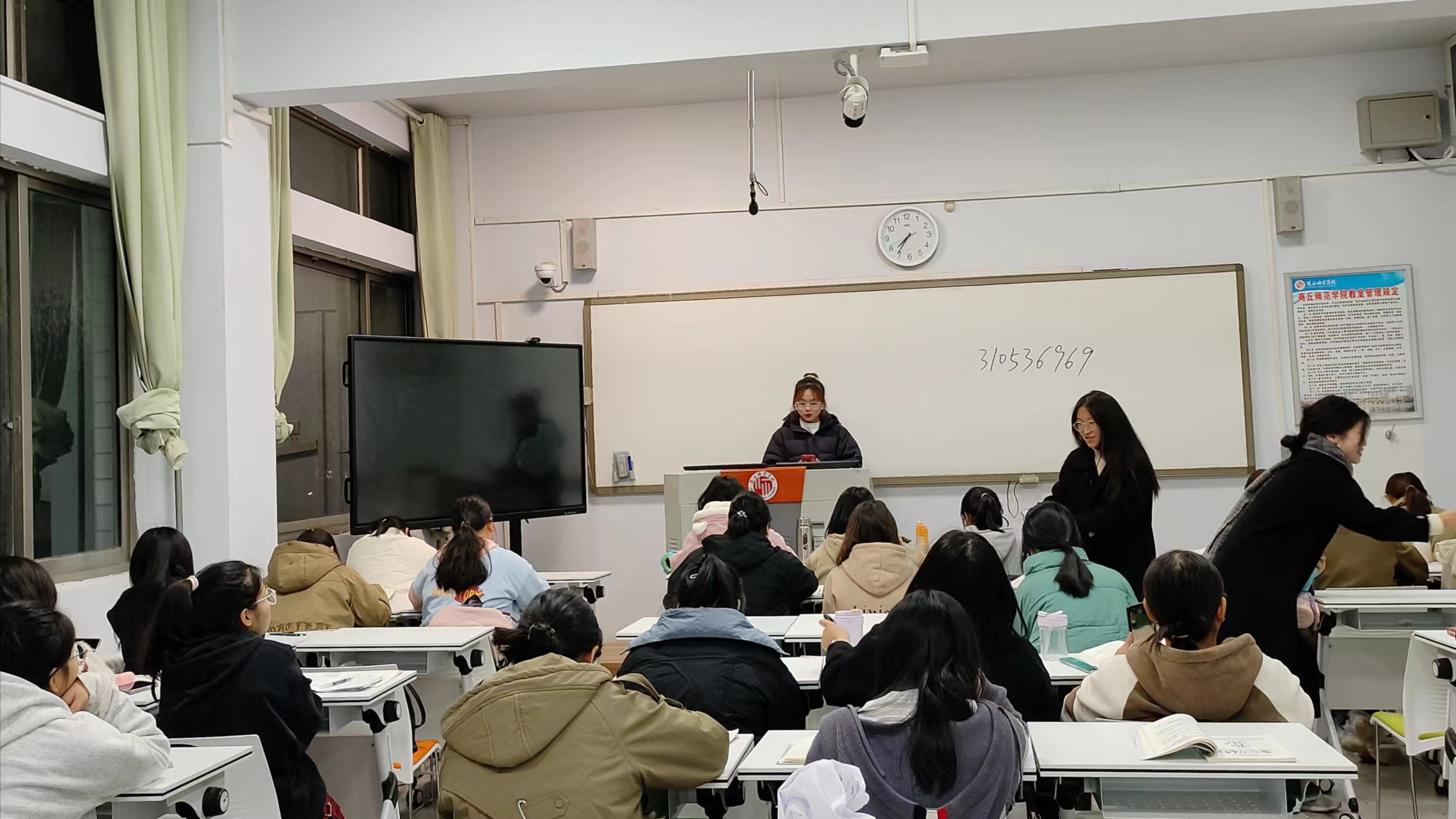 创新创业部成员入班之后,向同学们讲解了全国大学生职业规划大赛的规则及注意事项等内容。与此同时,他们指出这是一个让同学们深入了解自己的职业兴趣、明确人生方向的重要契机,希望同学们可以积极参与。宣传过程中,同学们认真听讲,做好笔记,并向宣传人员提出了自己的疑问,创新创业部成员耐心地为同学们进行解答。