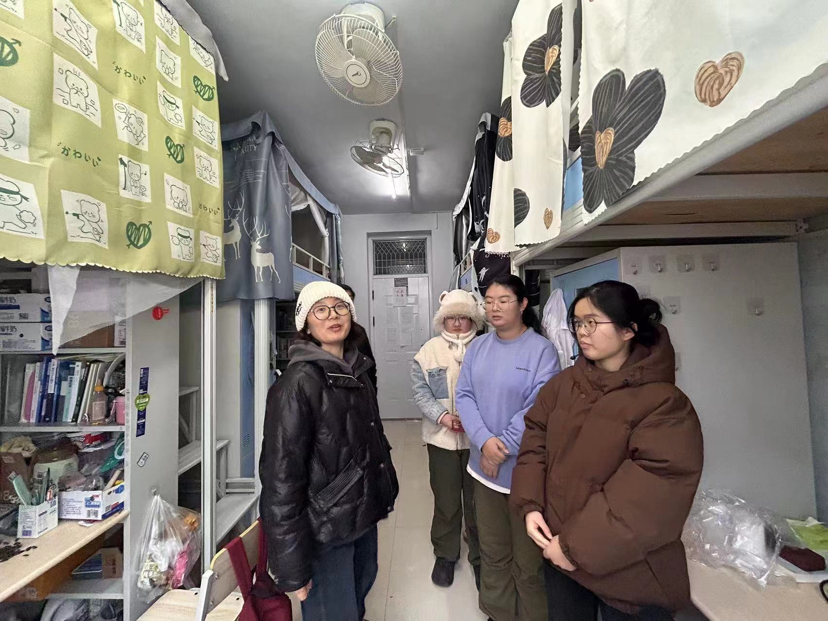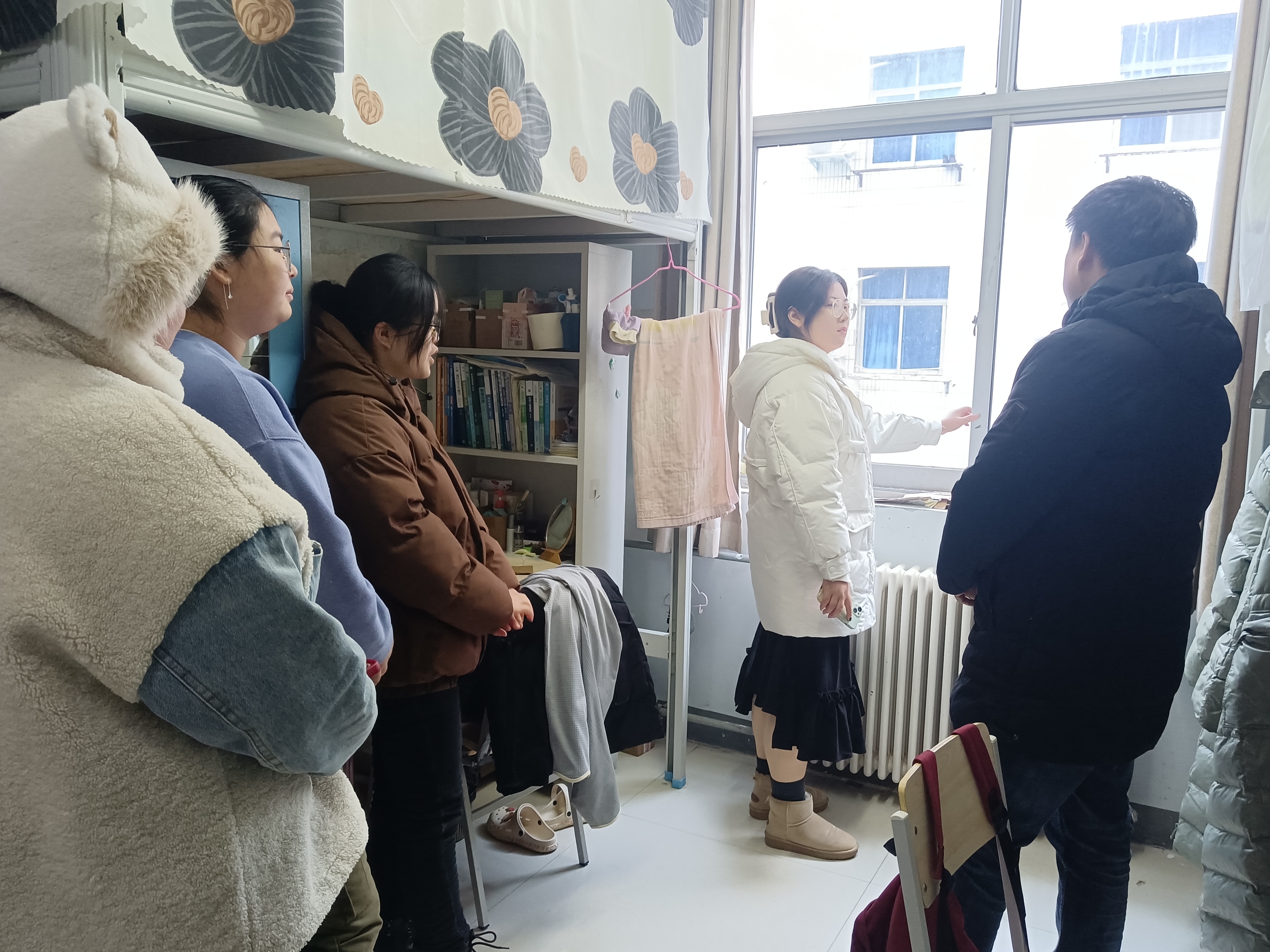 走访期间,辅导员们走进学生宿舍,排查宿舍安全隐患并询问同学们的身心健康情况。辅导员在了解学生安全、身心健康的同时,也不忘关心大一大二大三学生的学习情况,与同学们深切交流,解答同学们的疑惑。走访过程中发现的暖气不热的问题积极反馈给学校物业协调处理,确保学生寝室温暖。