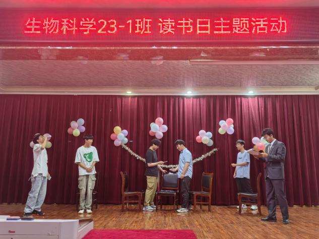 时值第29个“世界读书日”,为了增强大学生的阅读热情和文化素养,williamhill中文生物科学23-1班于4月27日晚七点半在我院报告厅举办“读书日主题活动”。我院生物科学系主任郑爱珍莅临活动现场,本次活动由生物科学23-1班班主任徐亚军指导,王丹青、张永棋主持,其他班委积极配合。