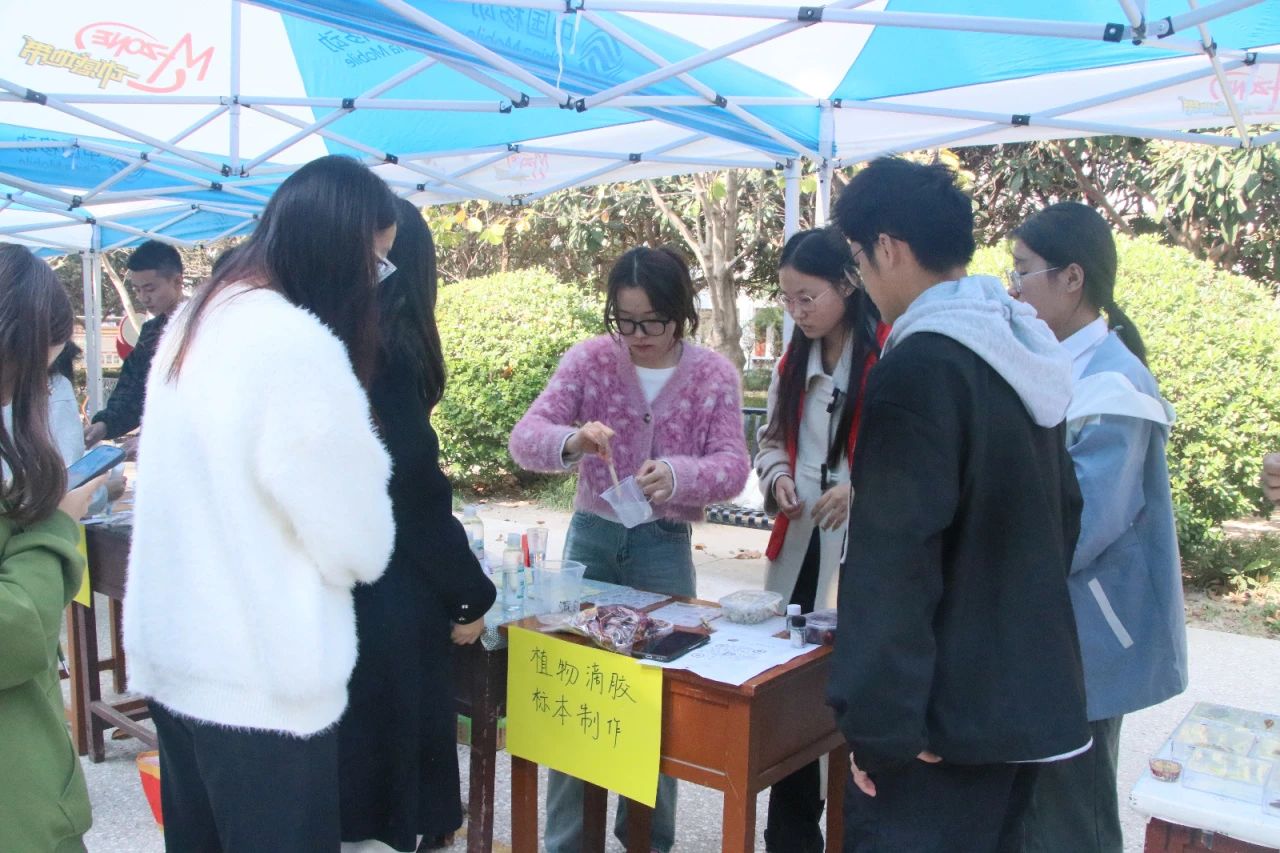 本次活动充分结合williamhill中文专业特色,活动包括植物滴胶标本、蝴蝶标本展示、测血压、树叶贴画制作、蚕茧手工作画、桃酥饼干和纸杯蛋糕制作等六个项目。
