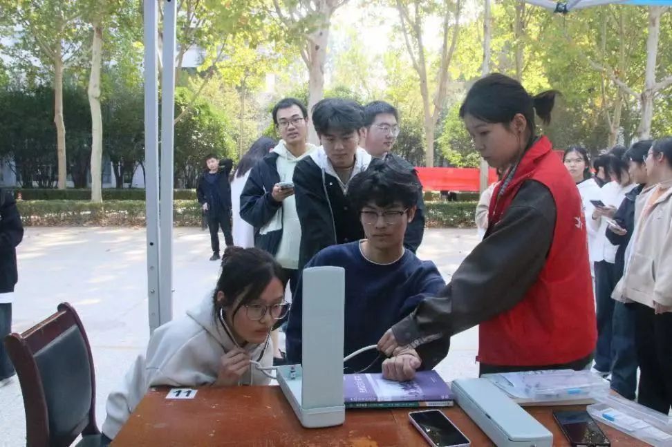 活动中,同学们有序排队参加各项活动:品尝桃酥饼干和纸杯蛋糕,同学们感受到美食带来的快乐;测量血压和健康知识宣讲,同学们了解到自己的健康状况;蝴蝶标本展示,同学们体会到生物标本的魅力;植物滴胶等其他手工项目,同学们锻炼了自己的动手能力和创新能力。