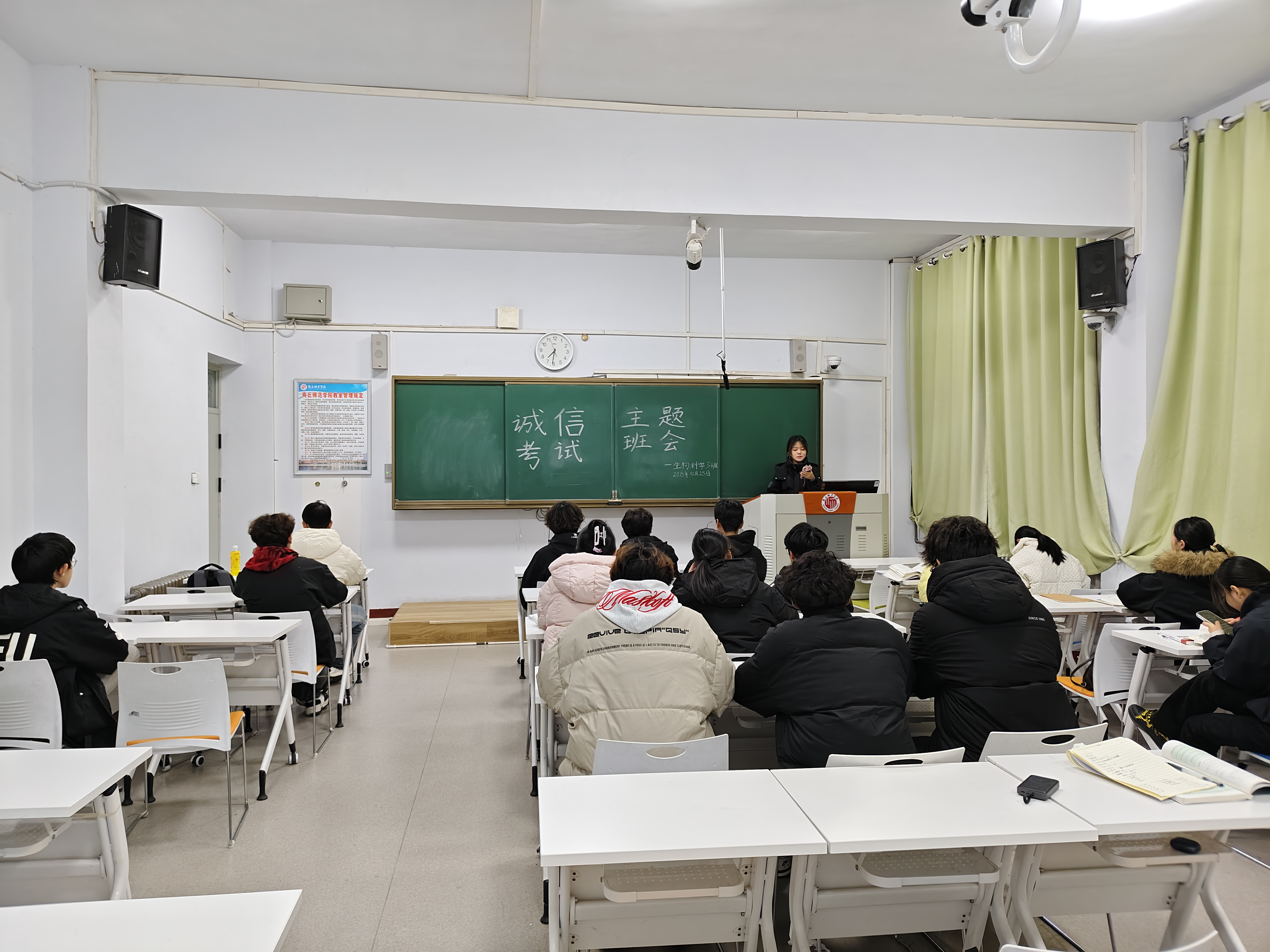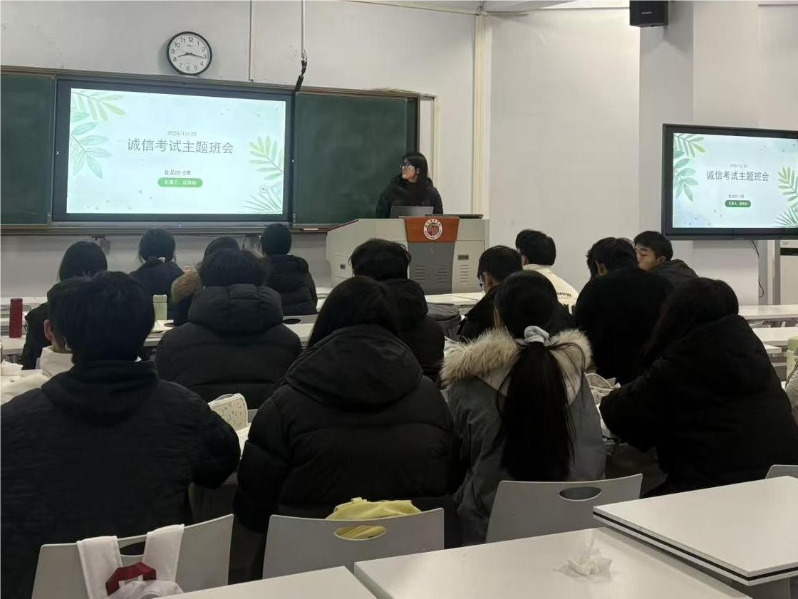 为深入推进学风建设,引导学生树立诚信意识、严肃考风考纪,营造公平公正的考试环境,12月25日—30日,学院各年级集中组织开展了“诚信考试”主题班会活动。