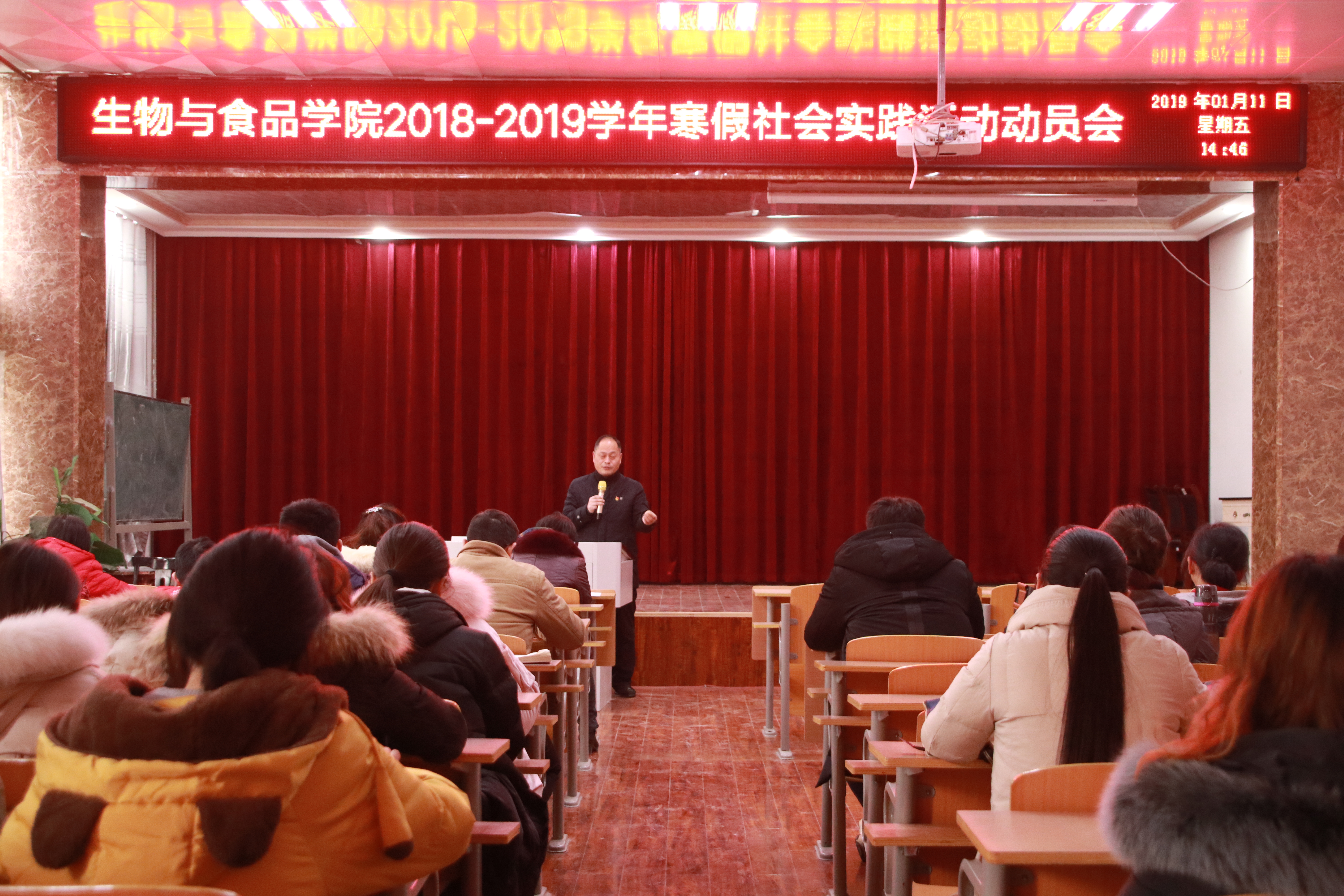 2019年1月11日,williamhill中文与报告厅召开关于2018-2019学年寒假社会实践活动动员大会。出席本次会议的有:williamhill中文党总支副书记史继红、团总支书记陈东鹏、以及各年级班主任和17级全体学生。