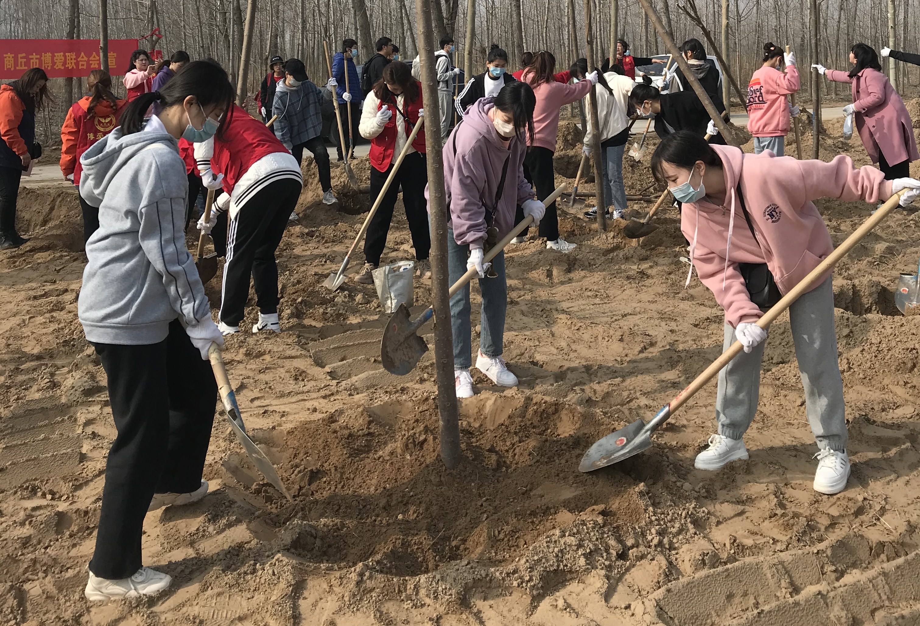 春日暖暖,生机勃勃。为了让同学们更好地参与社会公益实践活动,树立义务劳动和志愿服务精神,学院于3月14日上午组织学生参加了由商丘市博爱联合会组织的黄河故道国家森林公园公益植树活动。参加本次活动的有:郑爱珍主任、19级生物科学专业班主任石贤萌博士、邵璇博士、钟华明博士和19级生物科学专业部分同学。