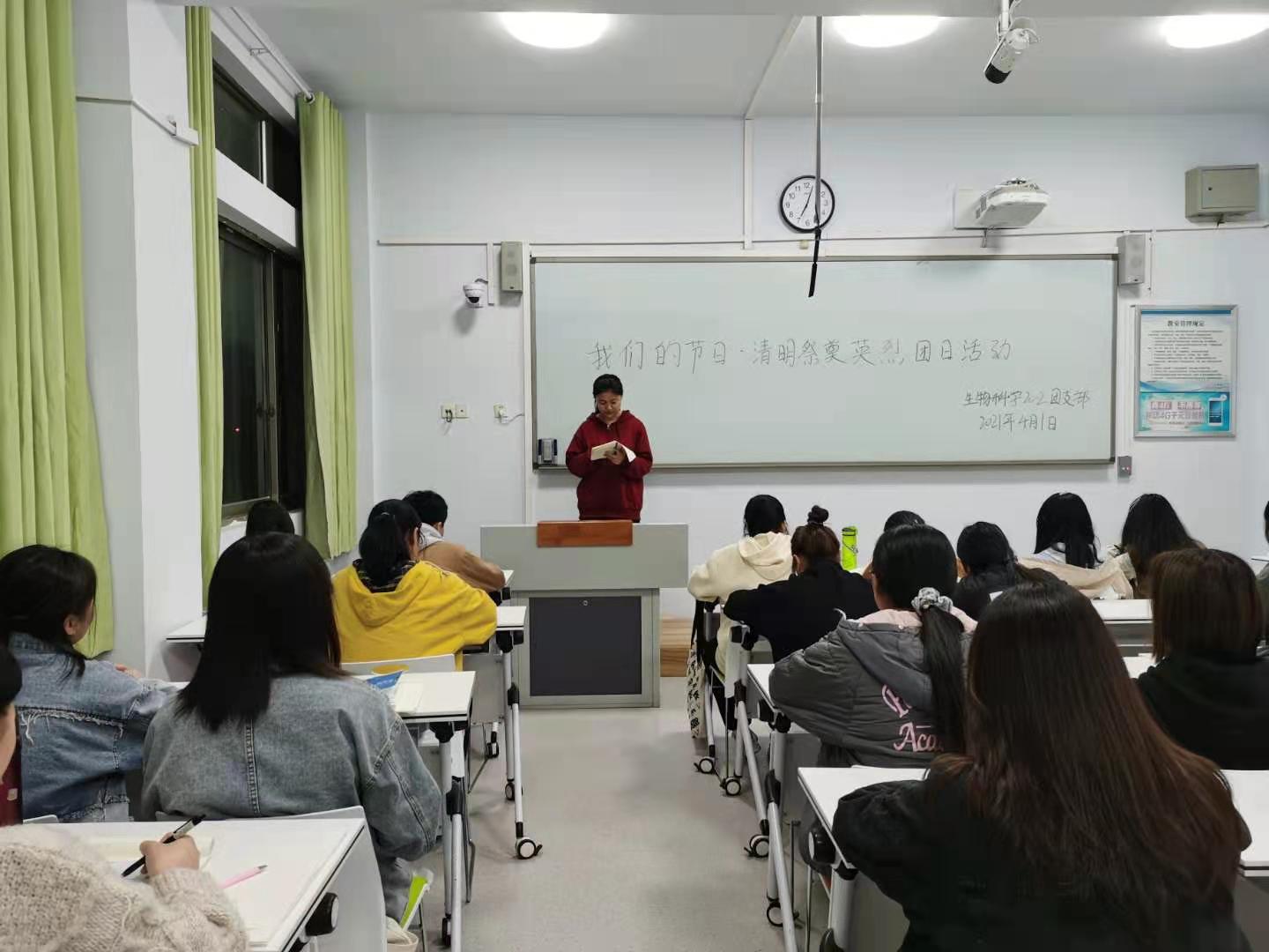 活动伊始,由团支书及组织宣传委员提前在班里发布了本次活动的主要主旨,让同学们提前做好了活动准备。接着,团支书先上台宣读此次活动的目的和意义,然后请同学们依次上台分享自己在观看有关祭奠英烈的视频的心得感悟。经过同学们的发言,现场的氛围活跃到了一个新程度,我们进行了自由交流环节,环节中大家展开了激烈的讨论,互相谈着自己了解的革命先烈的英雄事迹和艰苦卓绝的奋斗历程,感受的战争年代炮火的洗礼和可歌可泣的红色精神。同学们互相交流,气氛十分融洽,最后团支书总结发言。