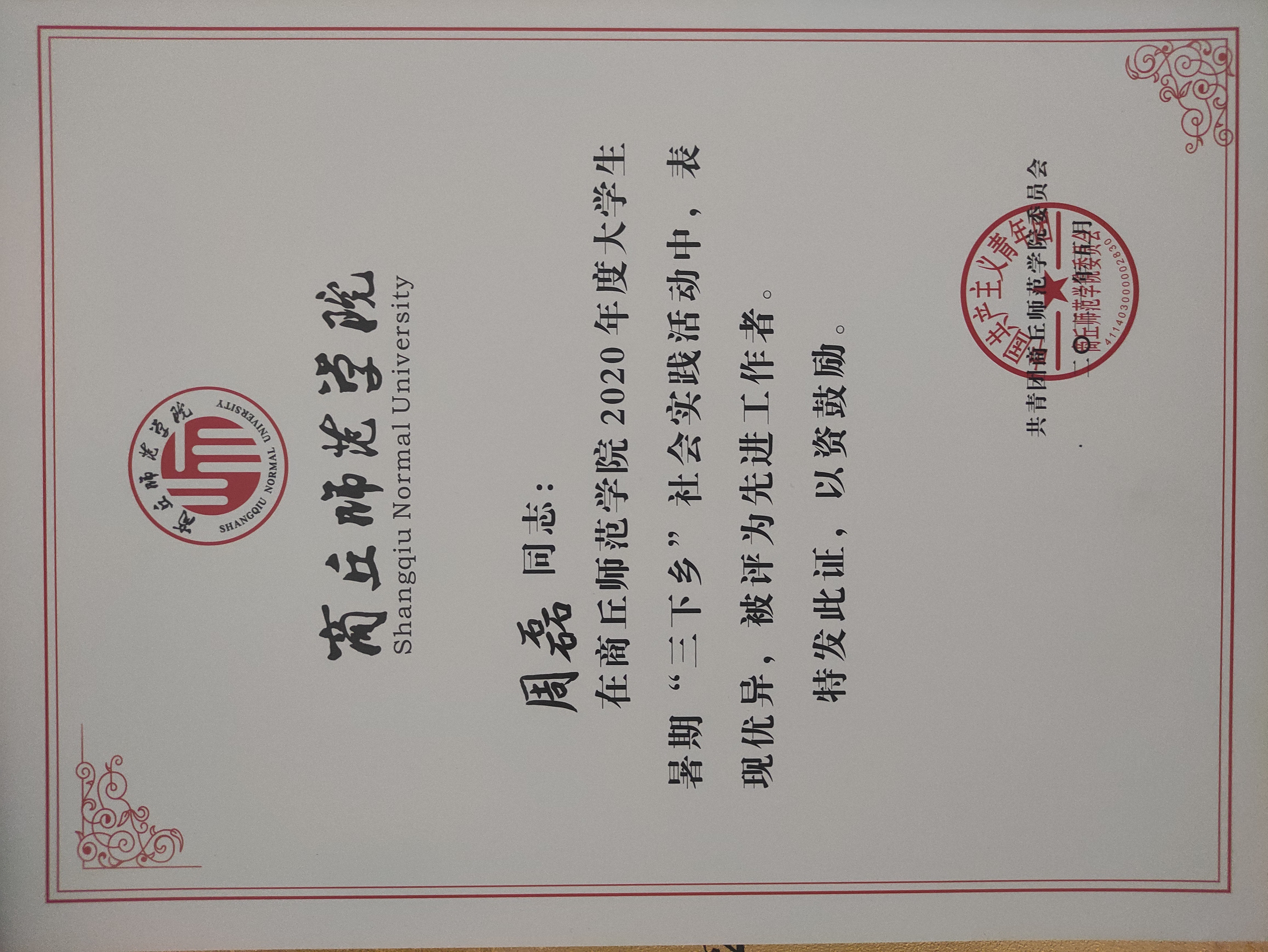 我院积极组织动员学生相互交流学习,激发学生的创新创业能力,在威廉官网中国2020年“挑战杯”大学生创新传业竞赛中荣获“优秀组织奖”。在三下乡社会实践活动中,教师周磊、徐园园积极带领学生投入到三下乡活动中,表现优异,被评为“先进工作者”。