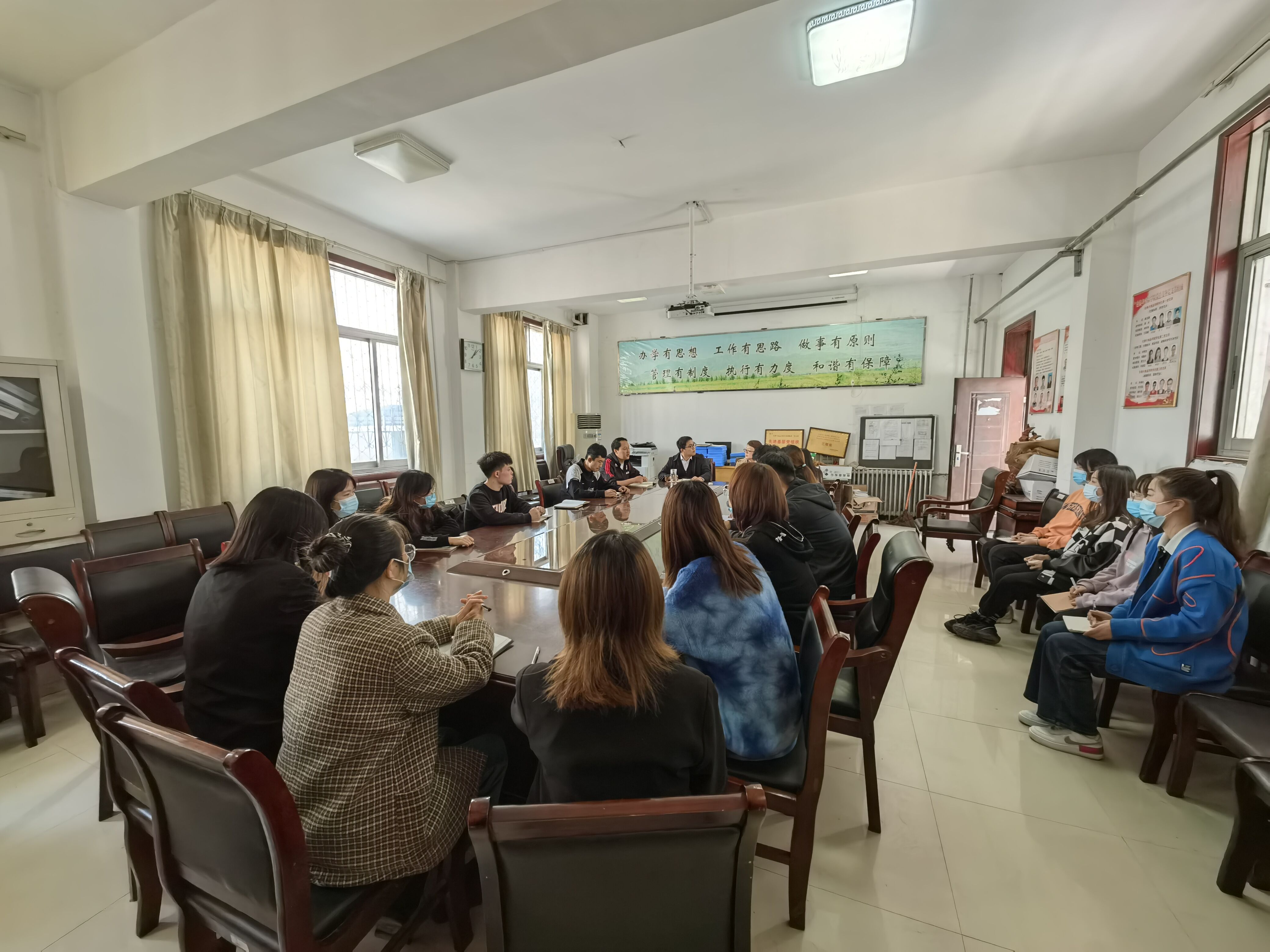 本次会议圆满结束。学院的进步需要全体师生的共同努力。我院团总支学生会应切实肩负起引领青年学子健康成长的责任,宣扬正确的世界观、人生观、价值观,各学生干部也应在自我约束、自我净化中提升个人核心竞争力。