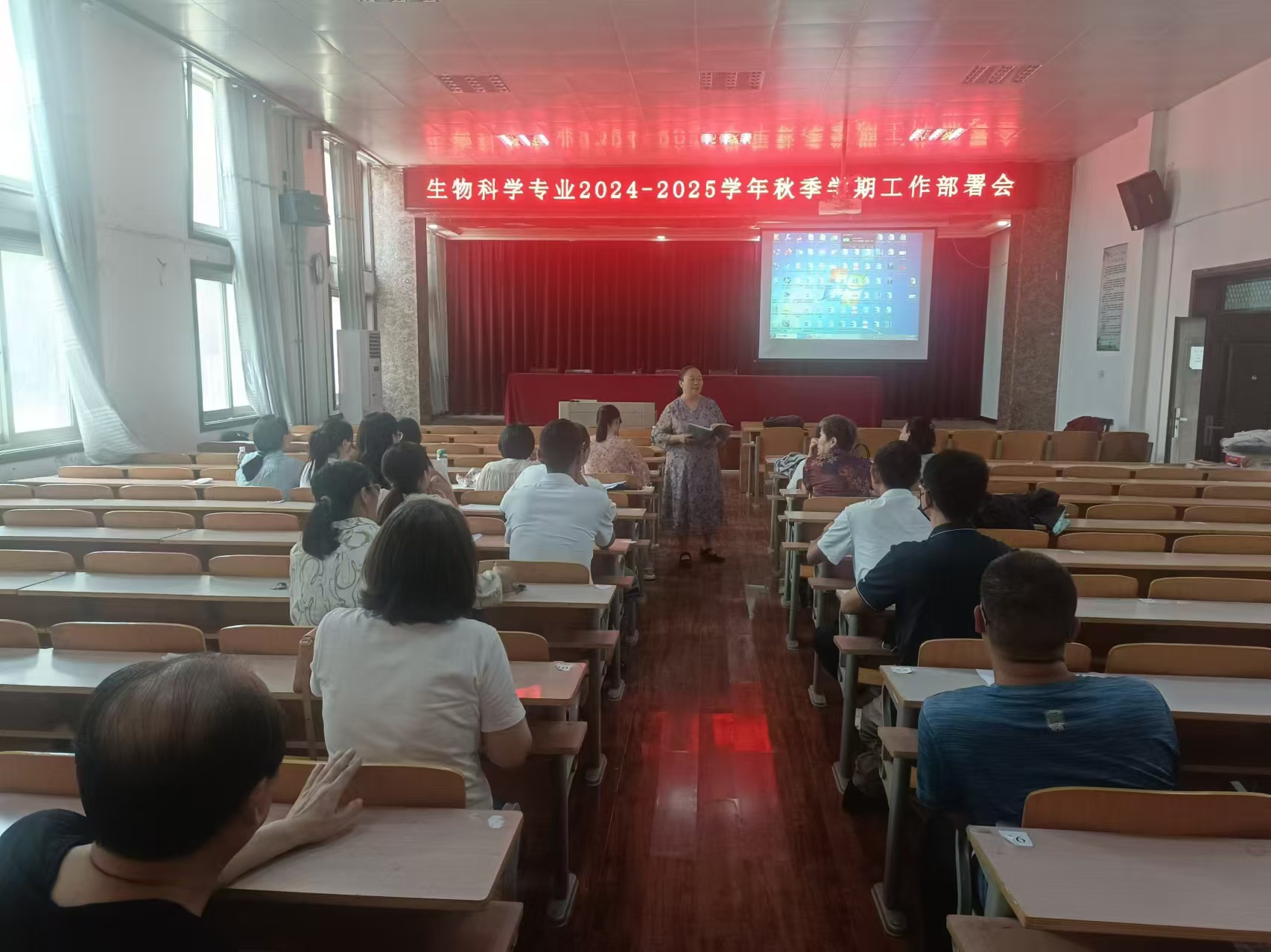 8月30日下午,生物科学专业在院报告厅召开了新学期第一次基层教学组织会议。参加会议的有生物科学专业全体教师,会议由系主任郑爱珍主持。