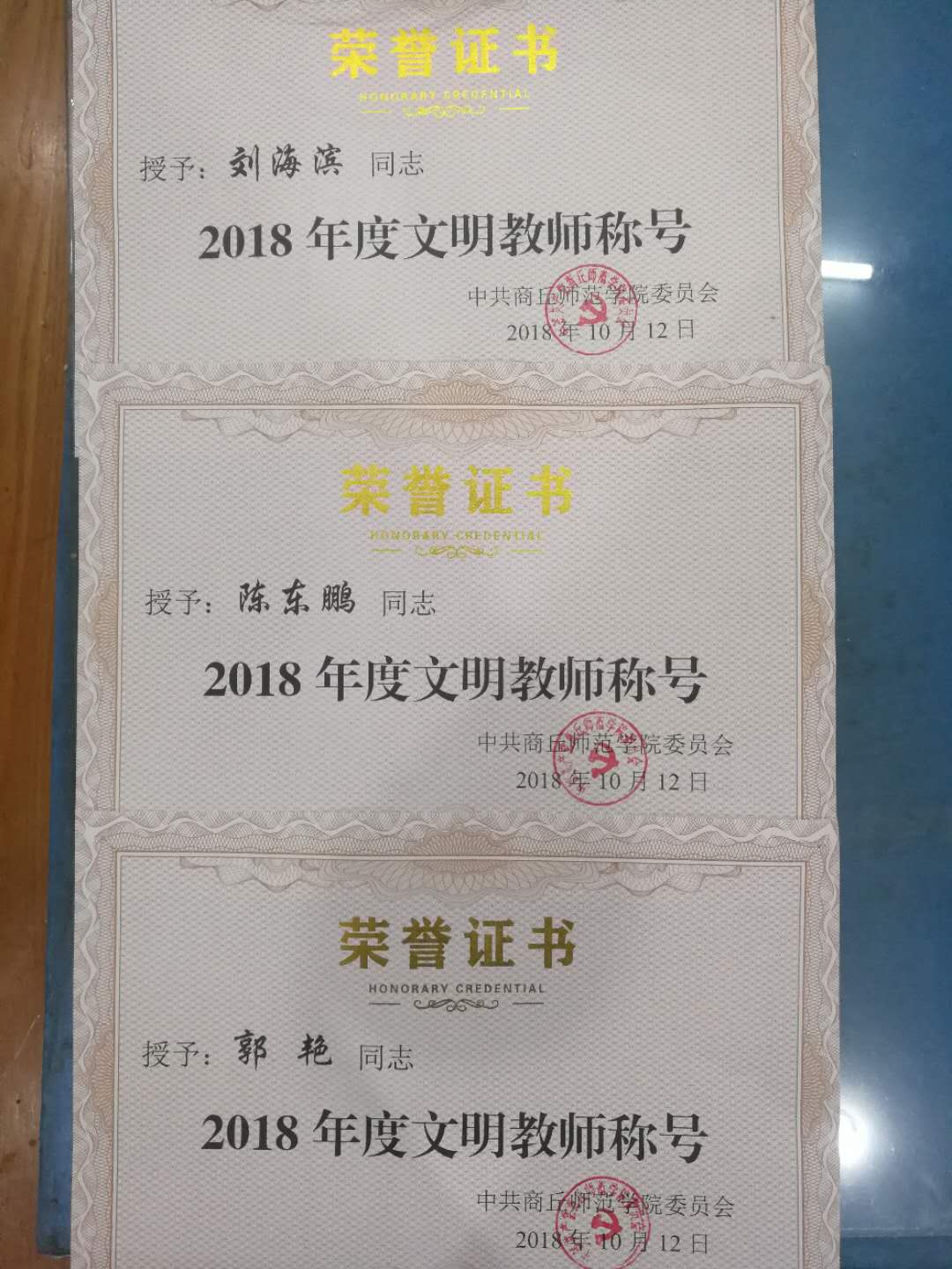 近期,学校党委对2017年度全文明教师进行表彰。我院陈东鹏、郭艳、刘海滨三名教师荣获“威廉官网中国2017年度文明教师”荣誉称号。