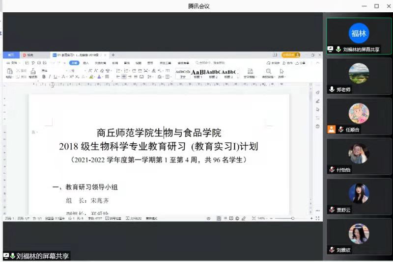 2021年9月5日上午9点至12点,生物科学系通过腾讯会议召开了2018级生物科学师范专业教育研习动员大会,参加会议的有2018级生物科学专业全体学生和刘福林、康洁、王玉玲、刘茵、张峰、马丽、黄杰、贾美丽等9位指导教师。会议由系主任郑爱珍主持。
