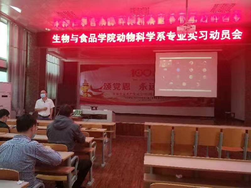 2021年9月6日下午,动物科学系在院报告厅以线上线下相结合的方式,召开了动物科学系2022届本科生专业实习I实习动员会。会议由施传信老师主持,全体动科系老师及毕业班学生参会。