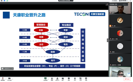 此次学习活动由天康生物校招负责人原阳基地人资部经理汪军主讲。汪军经理通过天康企业过去与未来产业链的展示,介绍了天康生物的发展历程、公司业务板块、天康职业晋升之路、入司专业集中培训以及2023天康生物人才需求等模块内容,讲授了动物科学专业相关行业的发展前景和人生规划。