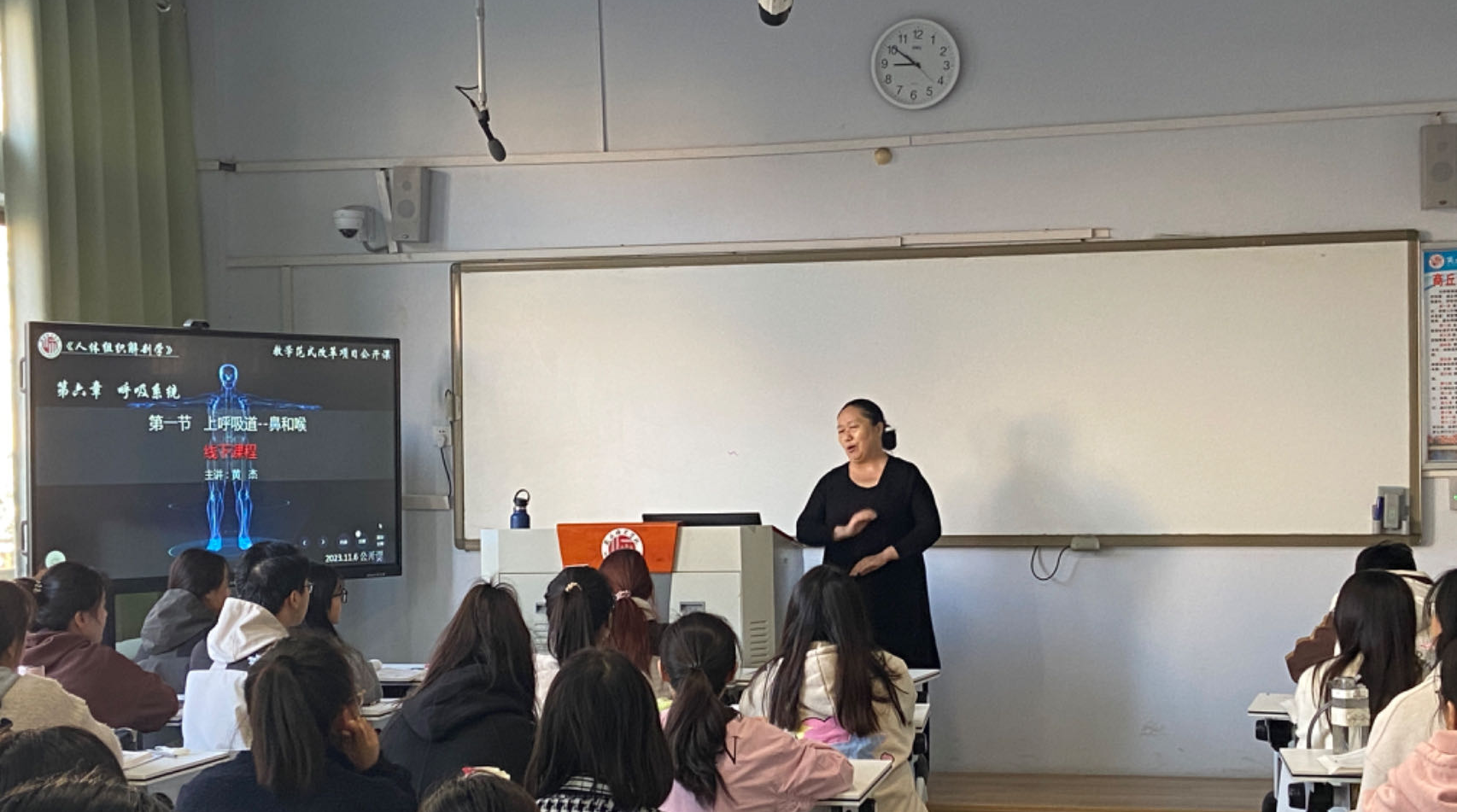 11月6日,williamhill中文黄杰老师在睢阳校区1号楼213教室进行《人体组织解剖学》公开课,生物科学系主任郑爱珍老师及学院部分教师观摩了此次公开课。