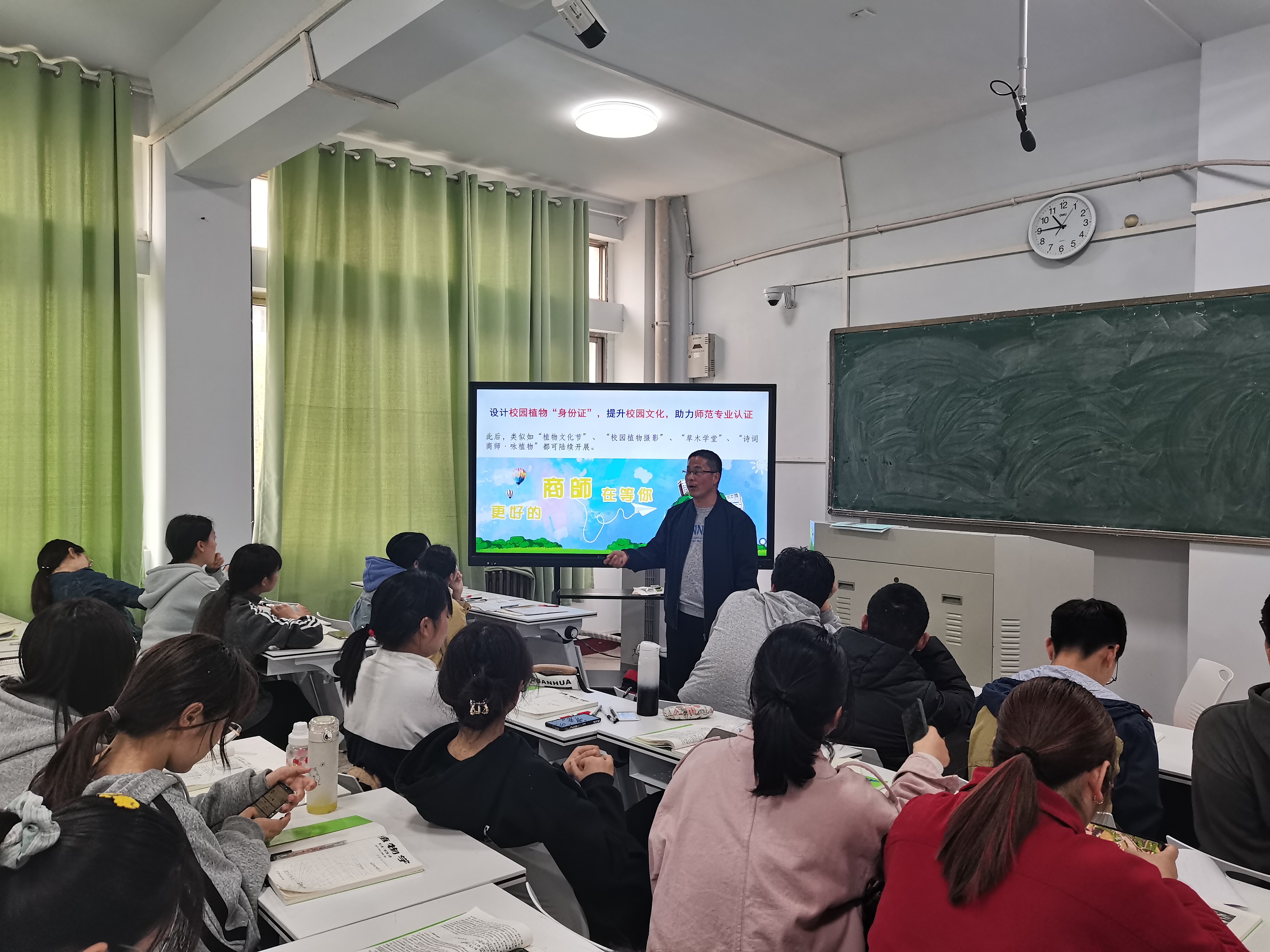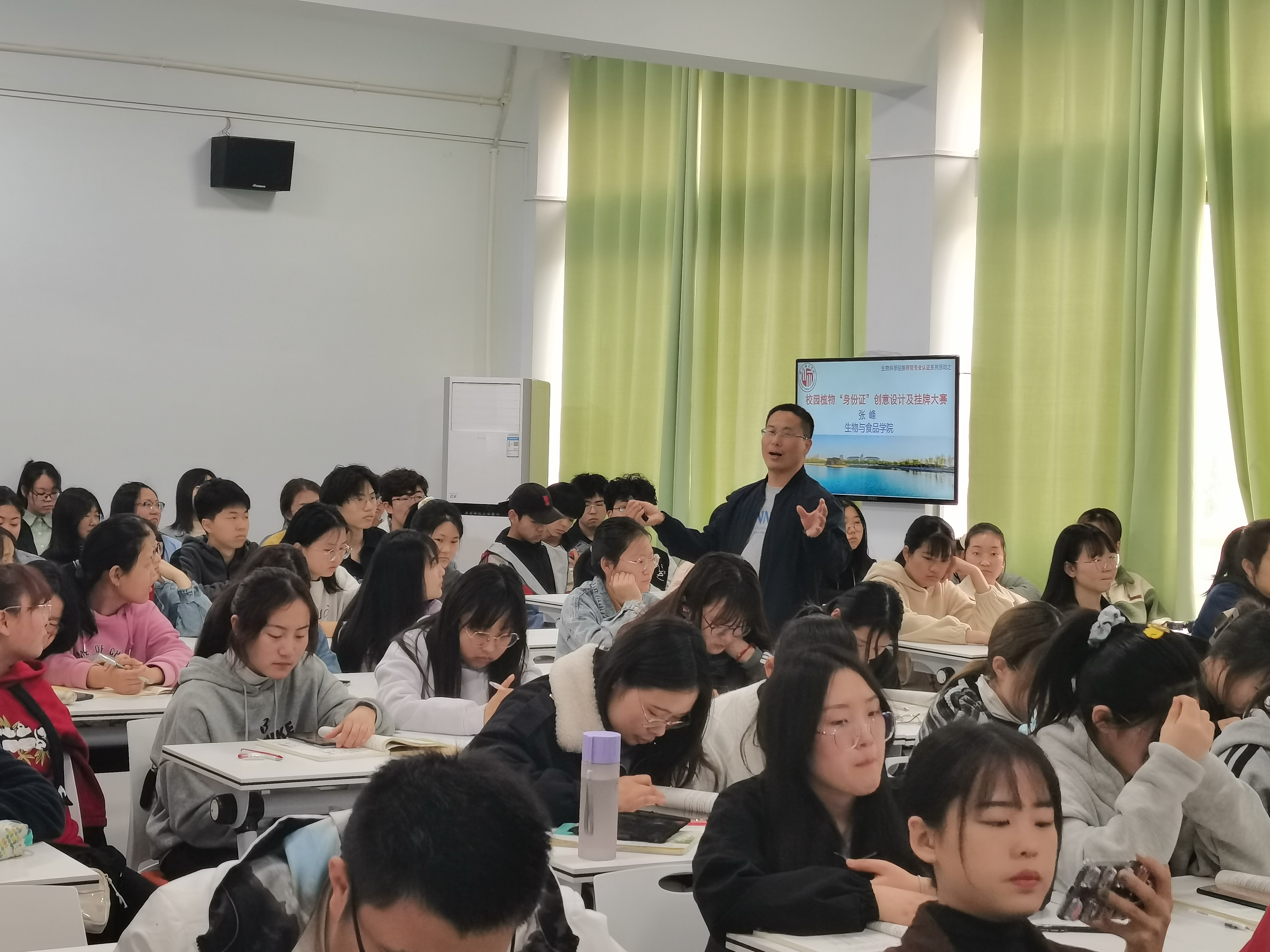 会上,张峰老师首先陈述了活动的作用及重要性:既可以增进同学间的友谊,增强集体荣誉感,激发同学们的创新潜能和熟练运用植物学知识于实际,又可以丰富多姿多彩的校园文化,创造美好校园生活。随后,张峰老师开始进行大赛任务分配,首先由各班级同学积极设计标牌,并由相关成员对植物进行深入认识,并且要加强深入了解植物属性,统计校园内植物的种类以及数量,并选取挂牌的植物种类和地点。为了迎接生物科学师范专业认证工作,张峰老师积极投入,搭建平台,结合学科和课程特点,精心设计活动方案,全程指导活动,努力践行师范专业的“一践行,三学会”理念,培养新时代下的“四有好老师”。并且,张峰老师还对活动比赛过程要做好宣传工作做出了具体要求和指导。