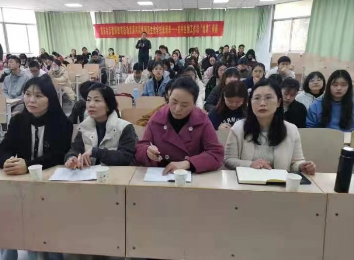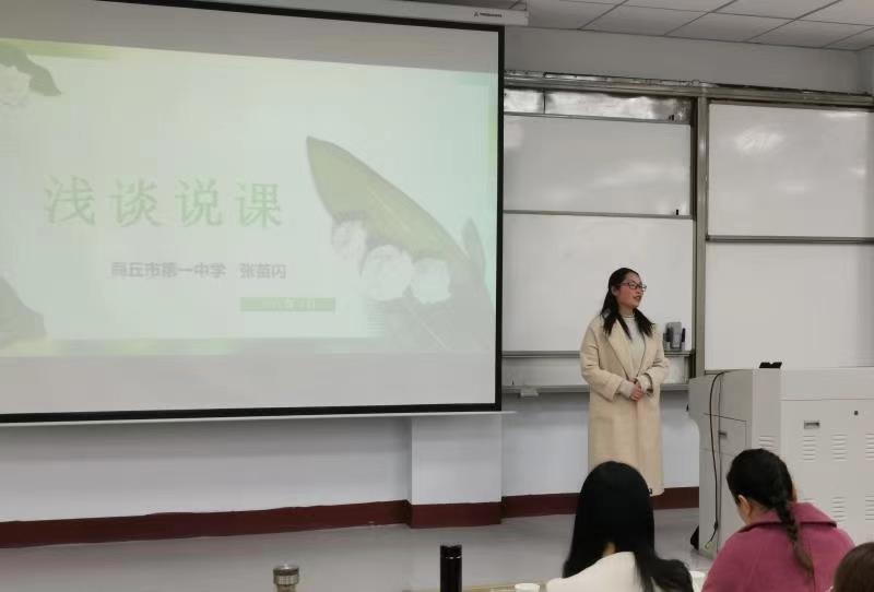 张苗闪老师以《浅议说课》为主题,从说课的概念、说课的意义、说课的流程,以及说课如何打磨等四个方面向同学们进行了详细的讲解,使同学们明白了说课与其他课型的区别,明白了说课对于提升教师的理论水平和对教材的理解能力起着重要作用。