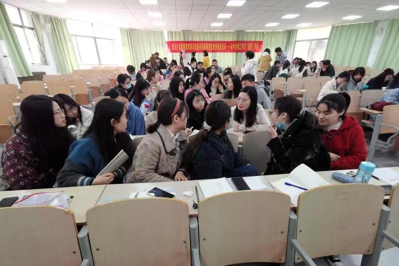 讲座结束后,每个小组在指导老师的组织下,进行了研讨交流,指导老师再次向自己的组员传授了说课的技巧,并布置了相关任务,要求每位同学,为下次的说课比赛做好准备。