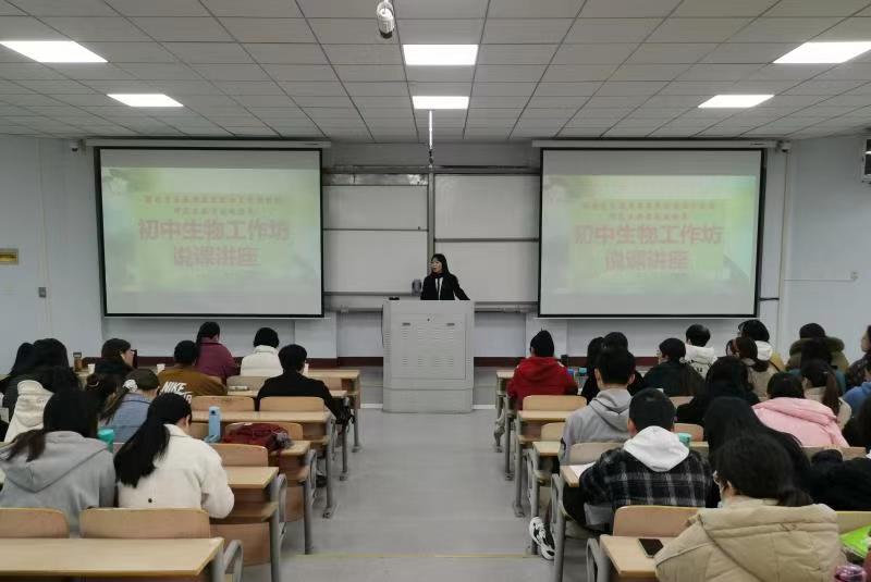 3月14日,农历二月初二上午9点,在威廉官网中国一号教学楼106教室,商丘市基础教研室张静老师带领各位坊主,为我校williamhill中文2018级生物科学专业近百名学生开展了“豫东片区教师教育共同体师范生教学技能培养——初中生物工作坊说课”讲座活动,由商丘市第一中学张苗闪老师担任主讲,张静老师主持。