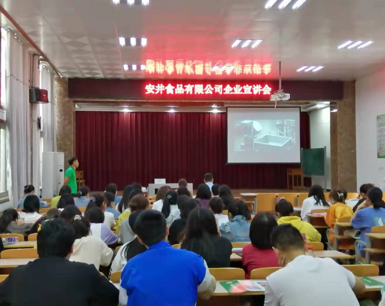 会议伊始,由宋旸老师为同学们介绍公司历程,宋旸就其公司企业文化、企业架构、生产基地布局、营销网络等方面进行介绍,向同学们全面展示了安井公司的独特魅力,随后,宋旸老师就其产品品类、知识产权专利、科研项目等方面进行讲解,向同学们展示了行业排名第一的发面制品,以及明星产品——菜肴制品。安井公司“马上去做,用心去做”的企业作风和经营理念广受好评。在交流过程中,宋旸老师向其公司询问了招聘岗位及薪资方面等问题。针对食品专业的培养岗位有质量检测、生产管理、技术研发、人事行政等方面。社会发展日新月异,速冻食品是社会发展趋势,安井公司向同学们展示了较为先进的生产理念。最后,宋旸老师希望同学们今后在实习方面,研究方面及就业方面进行多项了解,合理选择。