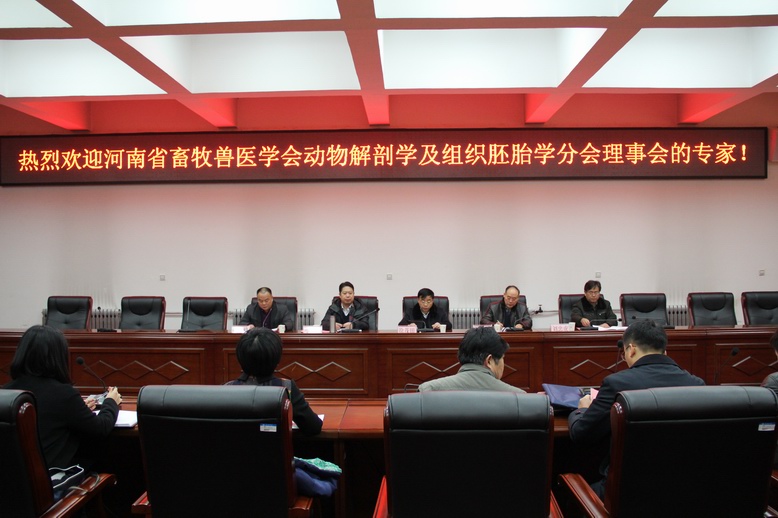 2015年12月19日,由我校生命科学学院承办、河南省正本清源科技发展股份有限公司协办的河南省畜牧兽医学会动物解剖学及组织胚胎学分会第一届理事会第二次会议在我校1号行政楼417会议室举行。中国畜牧兽医学会动物解剖学及组织胚胎学分会副理事长、河南农业大学张书松教授,河南省畜牧兽医学会动物解剖学及组织胚胎学分会理事长、河南农业大学李奎教授,河南省畜牧兽医学会动物解剖学及组织胚胎学分会秘书长、河南农业大学刘忠虎教授,河南省畜牧兽医学会动物解剖学及组织胚胎学分会副理事长、我校生命科学学院闫永峰教授,以及郑州大学、河南科技大学、河南师范大学等全省八所高校和协办单位的近30位动物解剖学及组织胚胎学的专家、学者参加了此次会议。我校党委书记介晓磊教授接见了与会专家代表,副校长徐茂田教授参加了会议开幕式。会议由闫永峰教授主持。