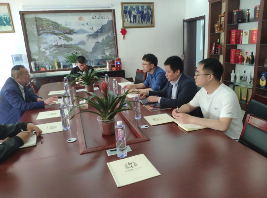 图1周庆峰院长一行与商丘井中家酒业有限公司总经理李宏光等人会谈