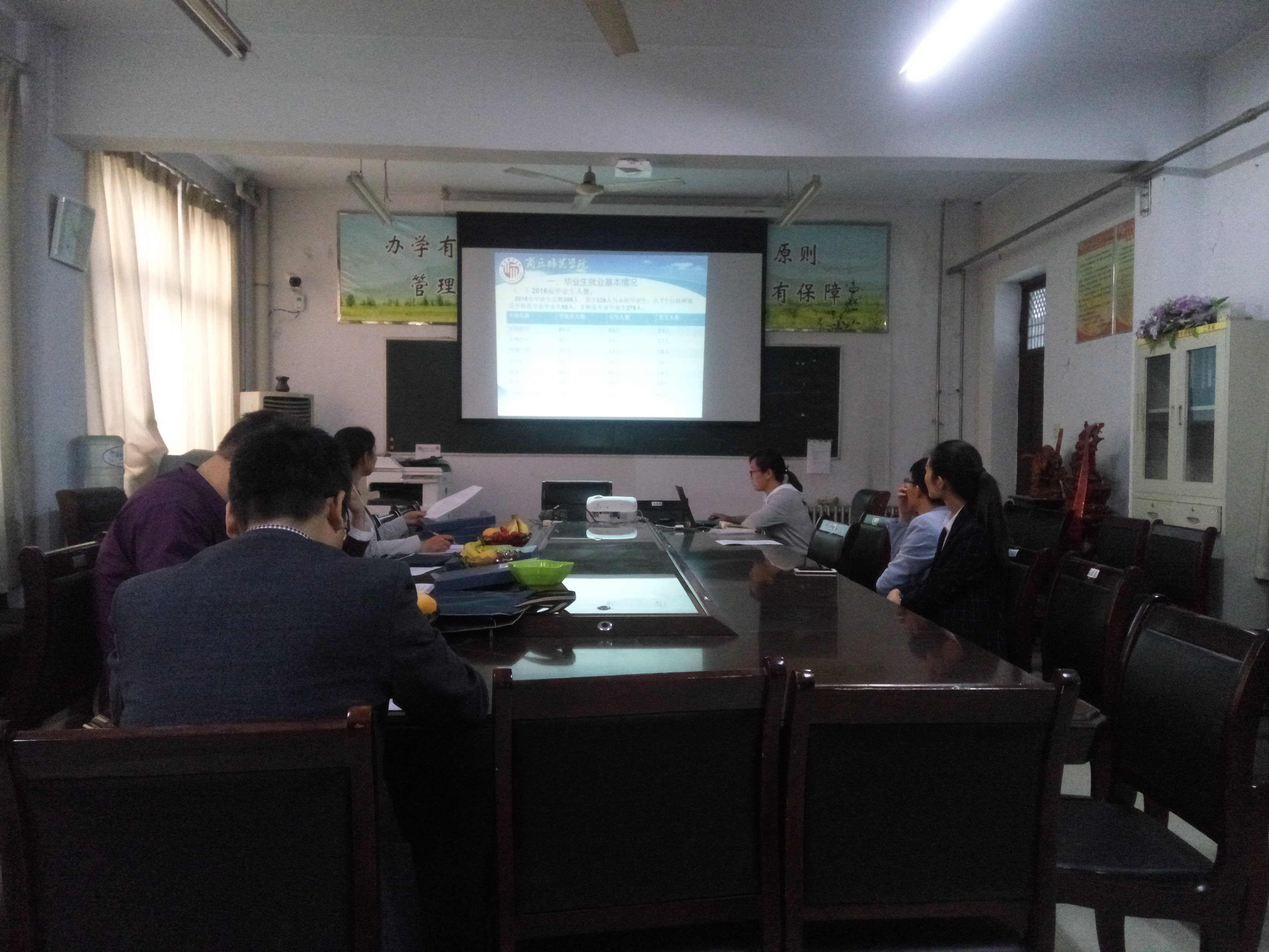 周庆峰院长对检查组成员的到来表示了热烈的欢迎和衷心的感谢。随后,周庆峰院长按照检查事项逐一介绍,并结合我院学生在求职、择业过程中的鲜活事例进行分析,对我院在就业工作方面的做法和主要亮点,以及就业工作中遇到的问题及困难向检查组成员做了全面汇报。接着,2016届毕业生辅导员张美芸老师作了PPT展示。