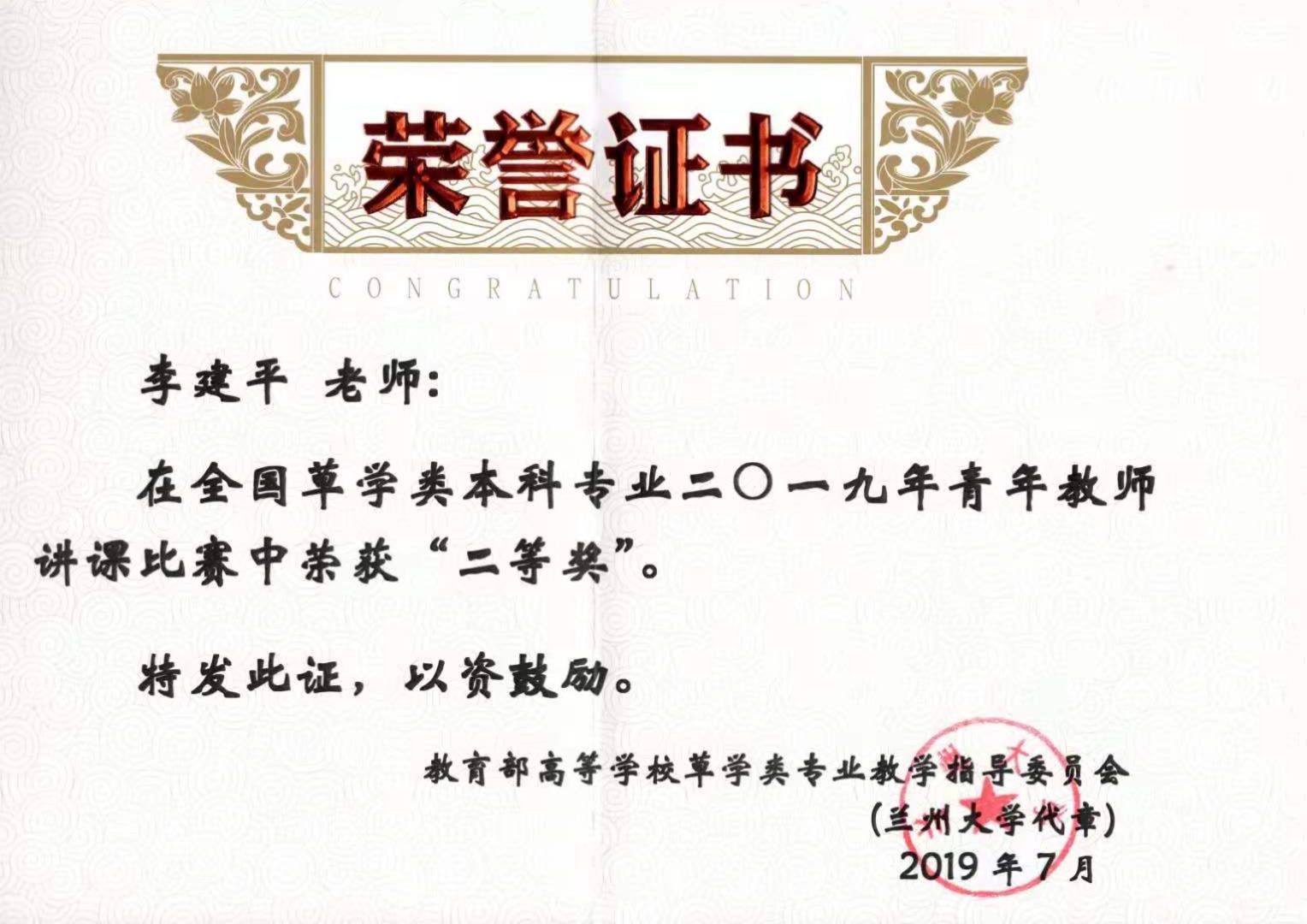 二、教学:主持宁夏大学教改项目1项,建设宁夏大学“互联网+教育”在线开放课程1项,培养研究生10名,联合培养博士2人。获得全国草学类青年教师讲课比赛二等奖1项,获得宁夏大学农学院青年教师基本功大赛二等奖2次,三等奖1次,指导草业科学本科毕业实习生10人,其中7人考取草业领域研究生继续深造。