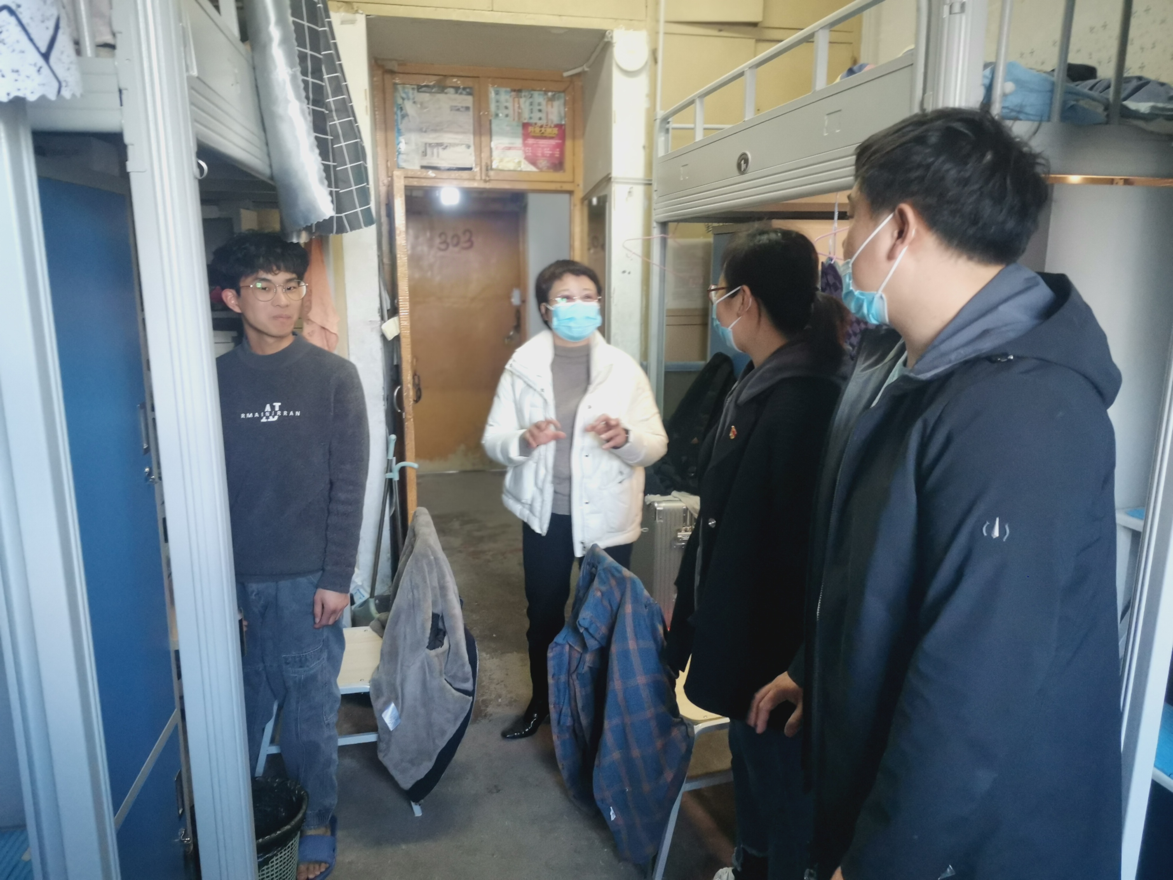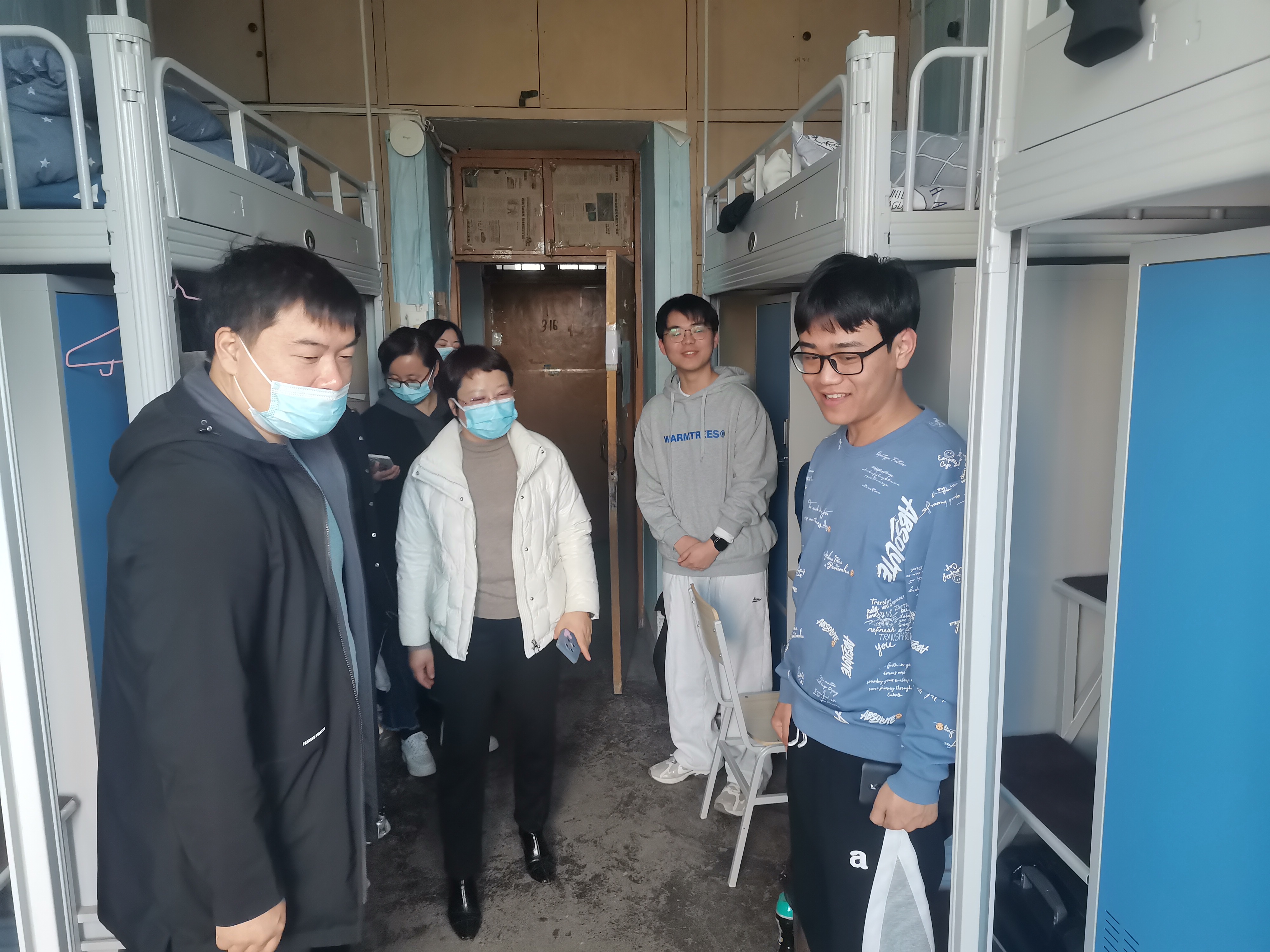 丁波莉认真听取了同学们对宿舍和生活服务设施的意见,询问学习、生活情况,了解学生思想动态,叮嘱同学们不仅要保证宿舍的清洁卫生,还要在日常生活中注意财物安全、用水用电安全和人身安全。各位辅导员老师勉励自己的学生要勤奋学习、努力向上,培养良好的生活习惯,营造良好的学习氛围,做一位文明的大学生,为今后更好地适应社会打下坚实基础,并提醒同学们提高安全防范意识,在教室、宿舍、校园内都要戴好口罩,勤洗手、勤通风。
