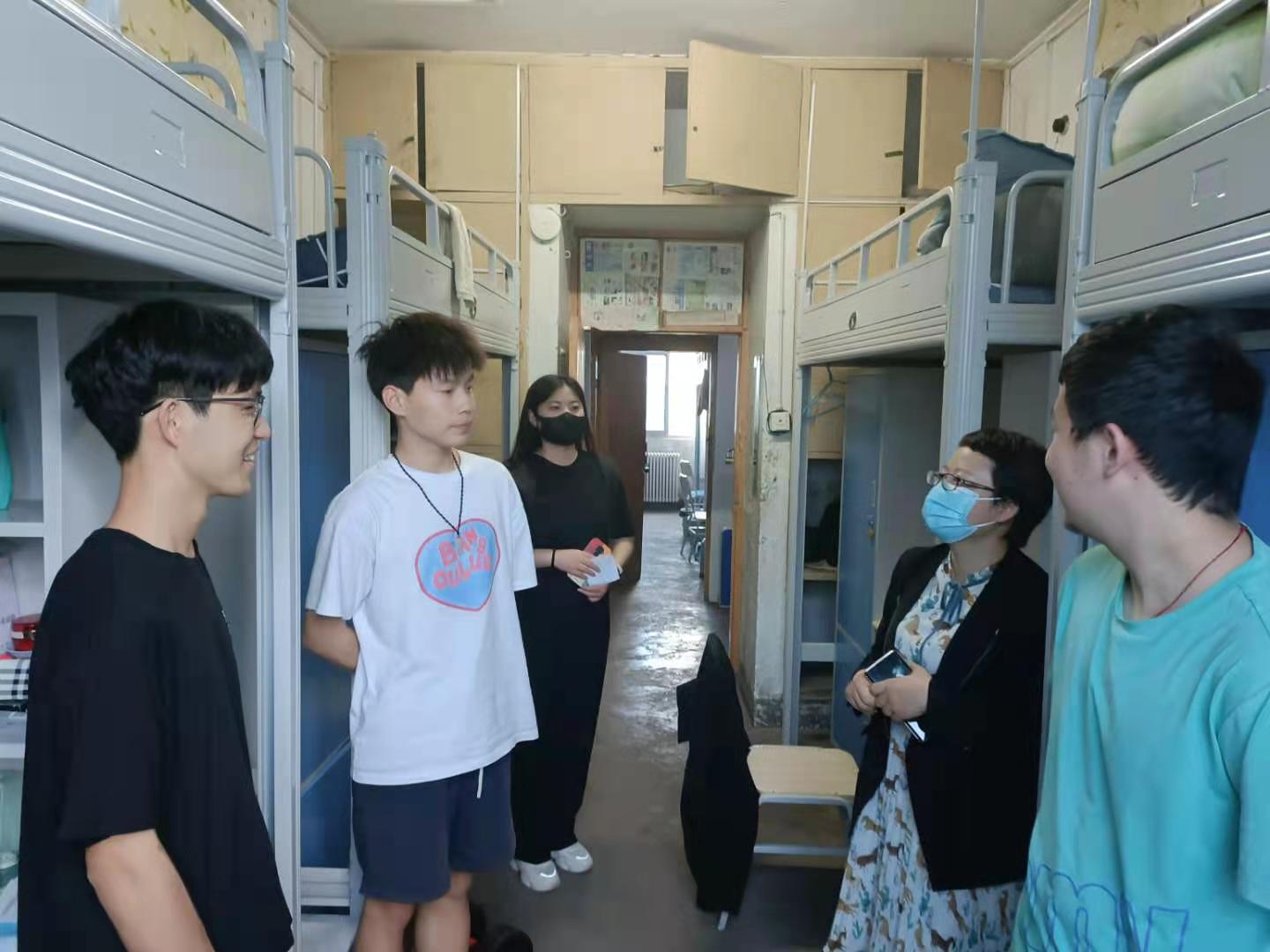 走访过程中,丁波莉亲切询问了学生的基本情况、网上学习情况、宿舍生活的感受,并就学生住宿环境、饮食问题以及寝室卫生等方面进行了交谈,叮嘱同学们严格遵守疫情防控期间学校的各项管理规定,做好个人防护,保持良好宿舍卫生。辅导员着重强调了宿舍安全卫生、疫情防控等方面的注意事项,提醒同学们在疫情防控期间养成良好的生活习惯和积极的心理状态。